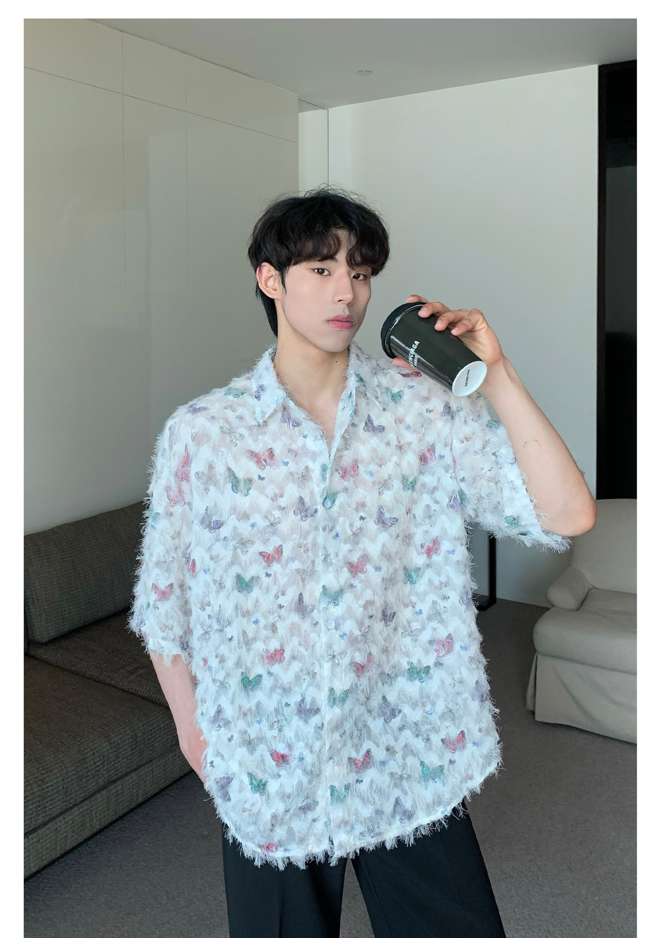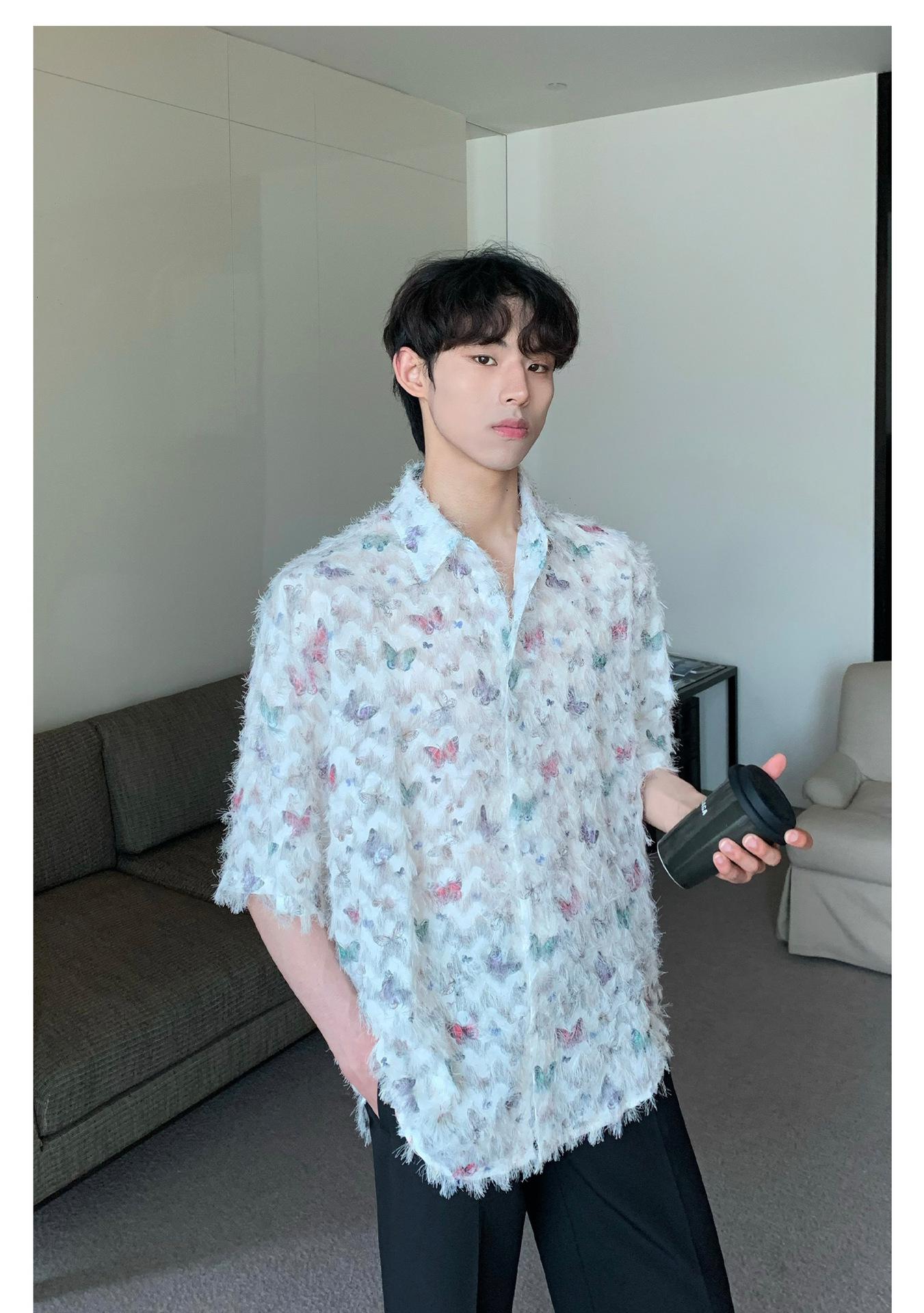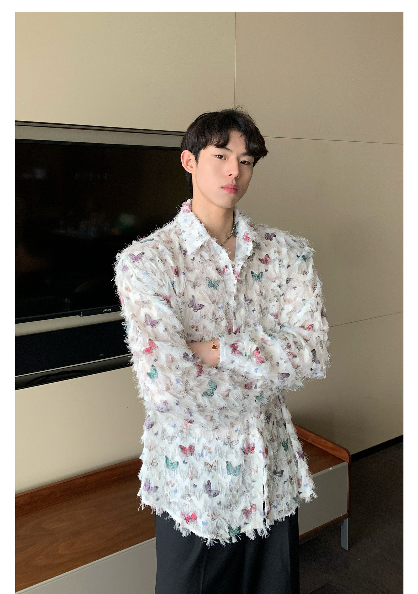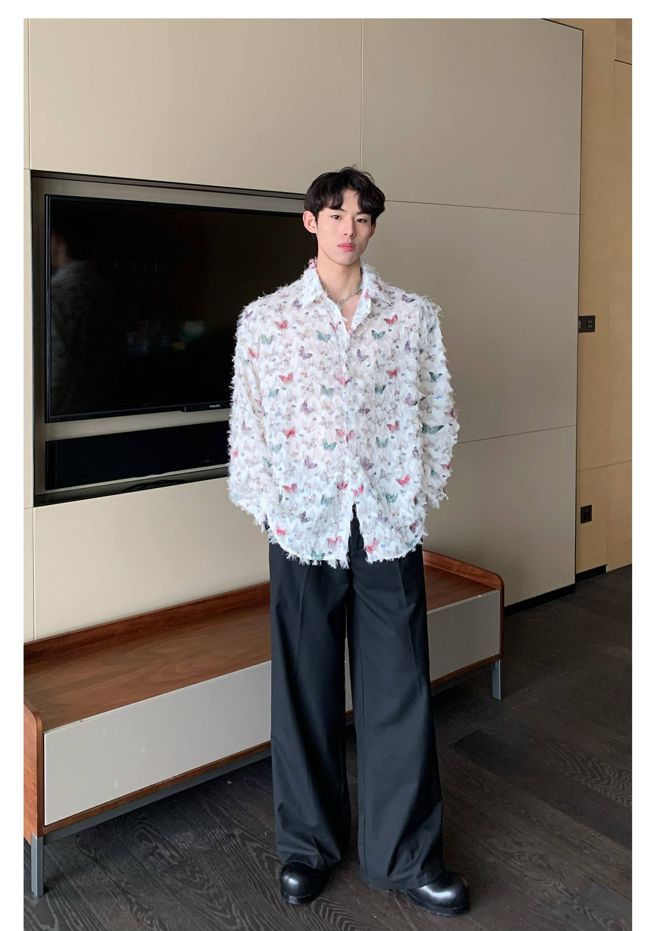 美式小众蝴蝶毛边流苏设计衬衫 原创设计立体流苏衬衣男