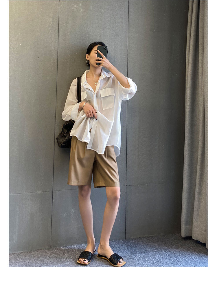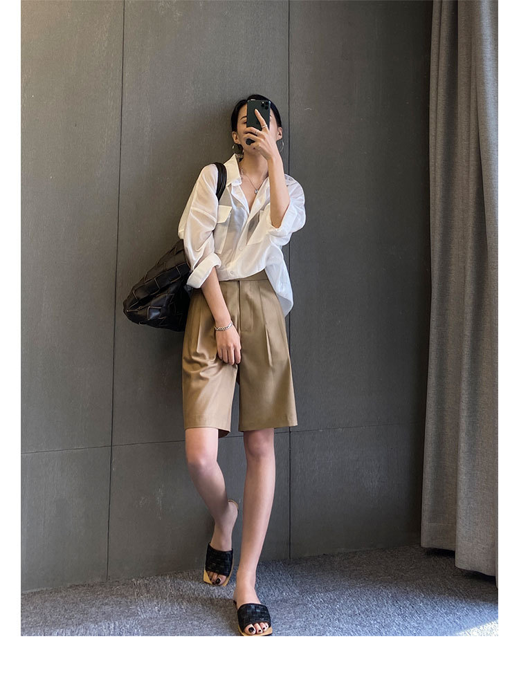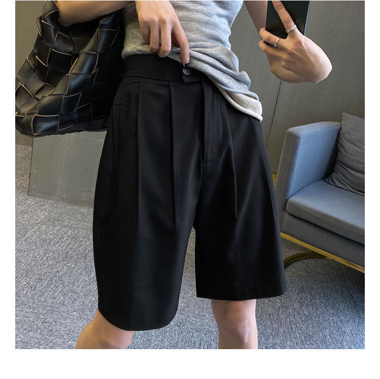 서양식 얇은 캐주얼 5 점 바지 여자 2025 년 여름 새로운 높은 허리 스트레이트 작은 와이드 레그 반바지스토어 가기