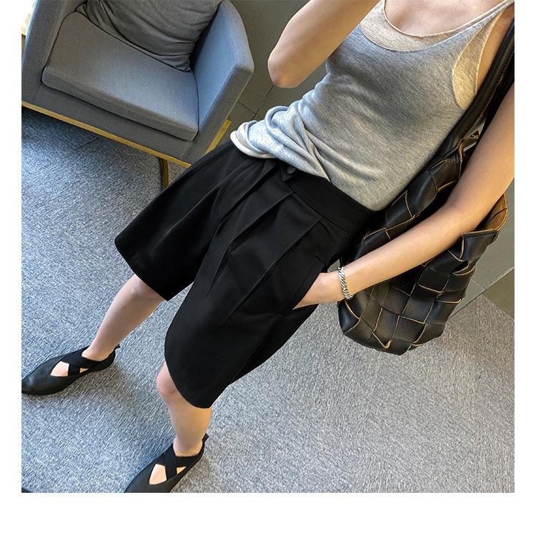 2023新款爆款夏季宽松休闲直筒夏装西装中裤五分裤薄款阔腿短裤女