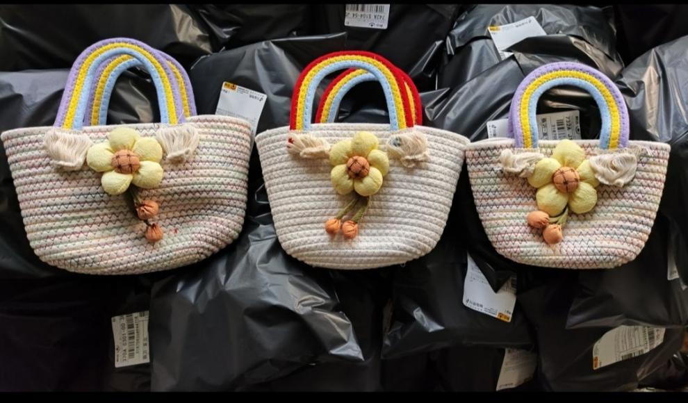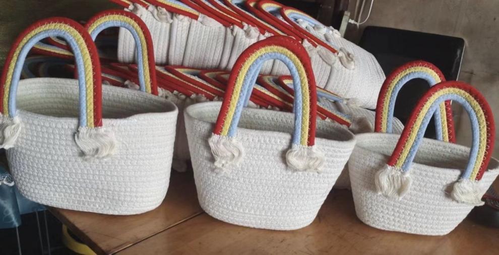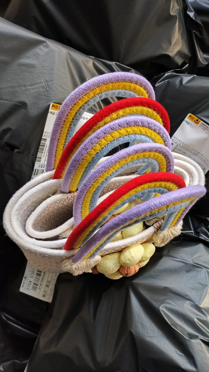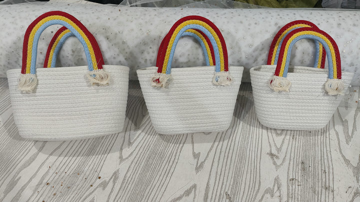 무지개 구름 가방 면 로프 짠 보관 바구니 휴대용 어린이 생일 바구니 아기 보름달 선물 GQ스토어 가기
