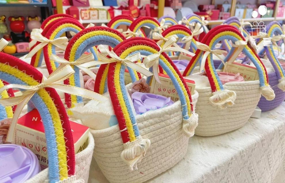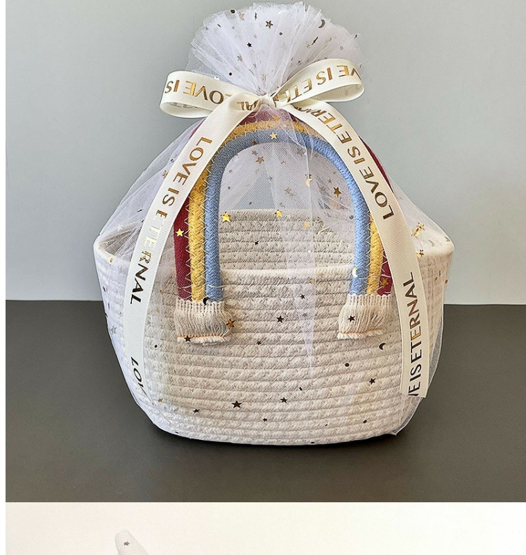 무지개 구름 가방 면 로프 짠 보관 바구니 휴대용 어린이 생일 바구니 아기 보름달 선물 GQ