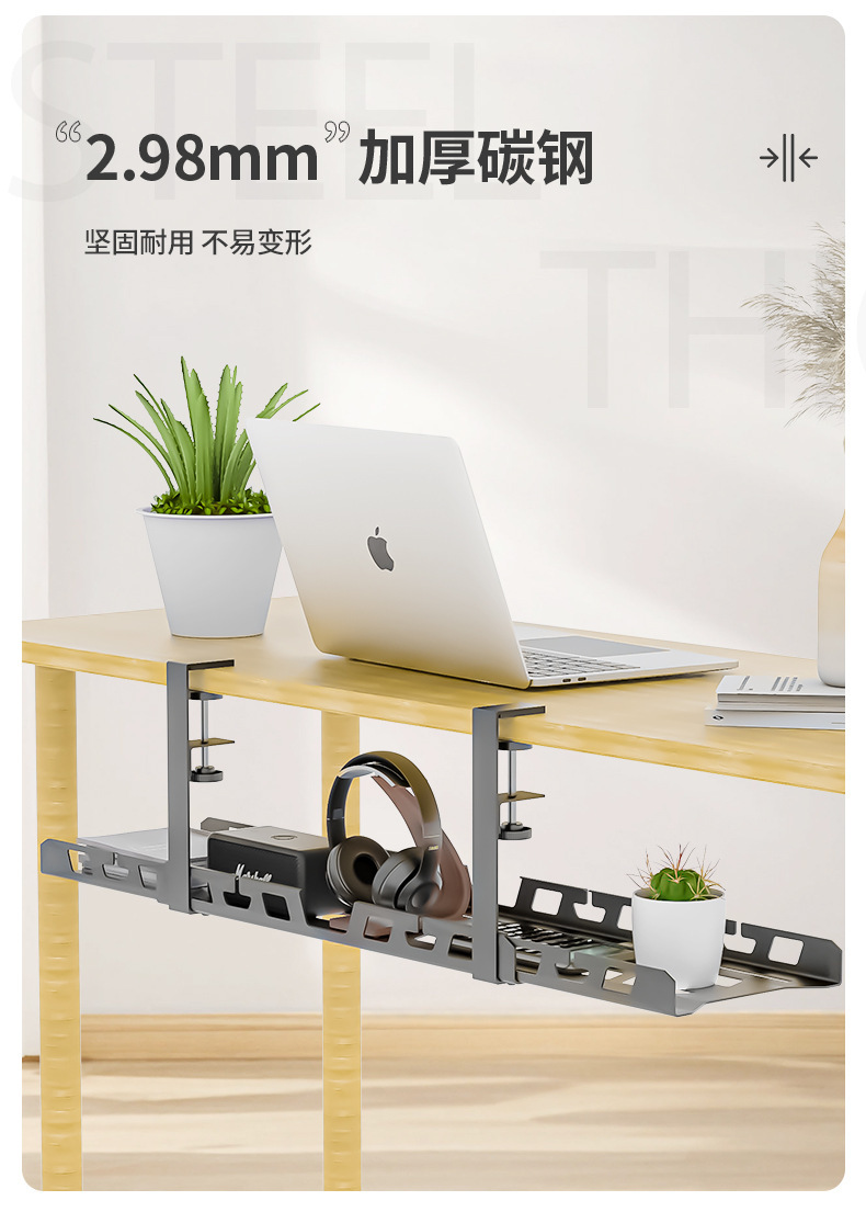 책상 아래 케이블 정리대, 컴퓨터 책상 하단 데이터 케이블 및 멀티탭 수납 슬롯 박스, 탄소강 케이블 정리대, 책상용 신축형