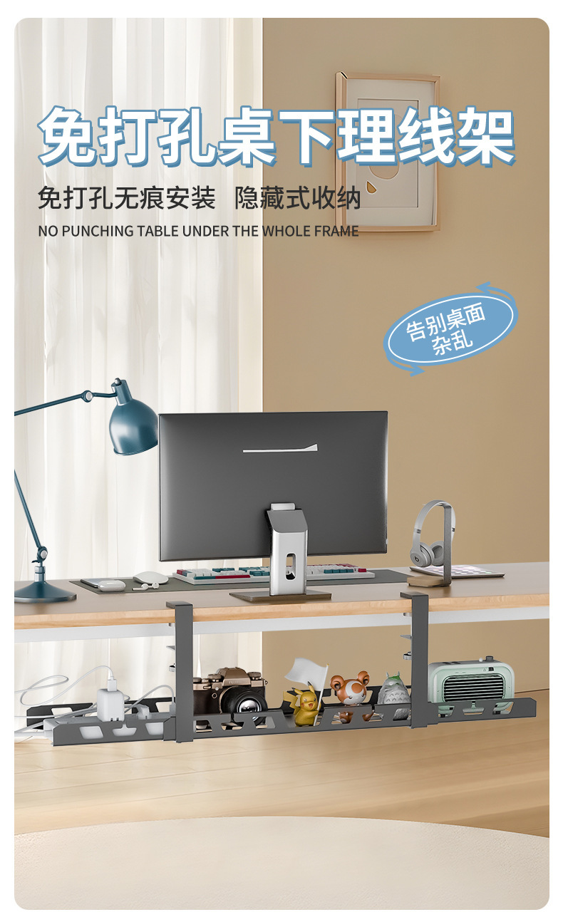 책상 아래 케이블 정리대, 컴퓨터 책상 하단 데이터 케이블 및 멀티탭 수납 슬롯 박스, 탄소강 케이블 정리대, 책상용 신축형스토어 가기