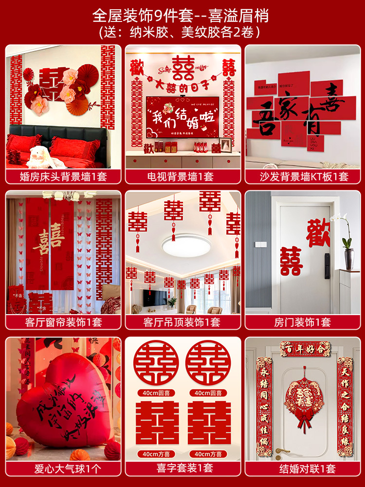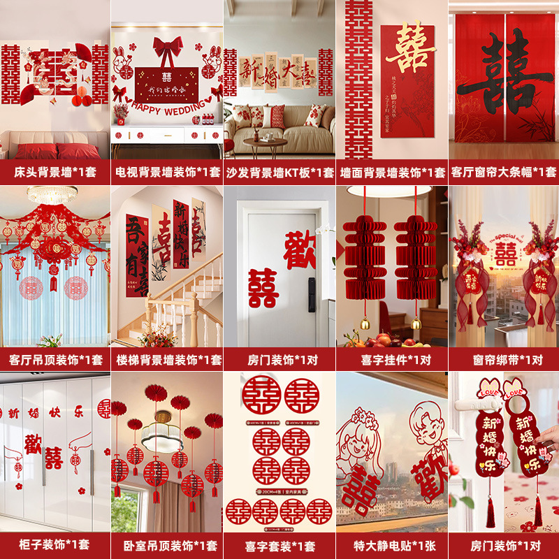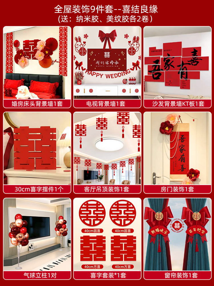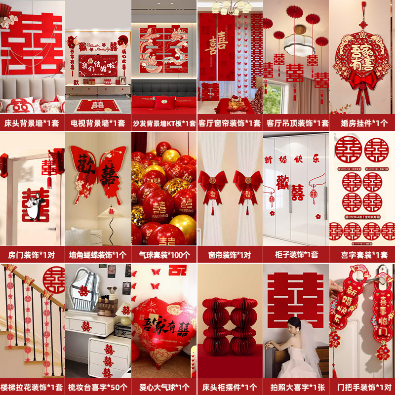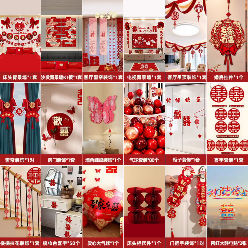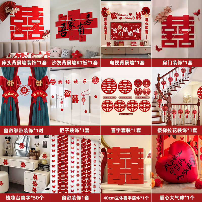 웨딩룸 레이아웃 세트, 웨딩 장식, 남성 웨딩, 새 집, 여성 침실, 집 전체 웨딩 용품