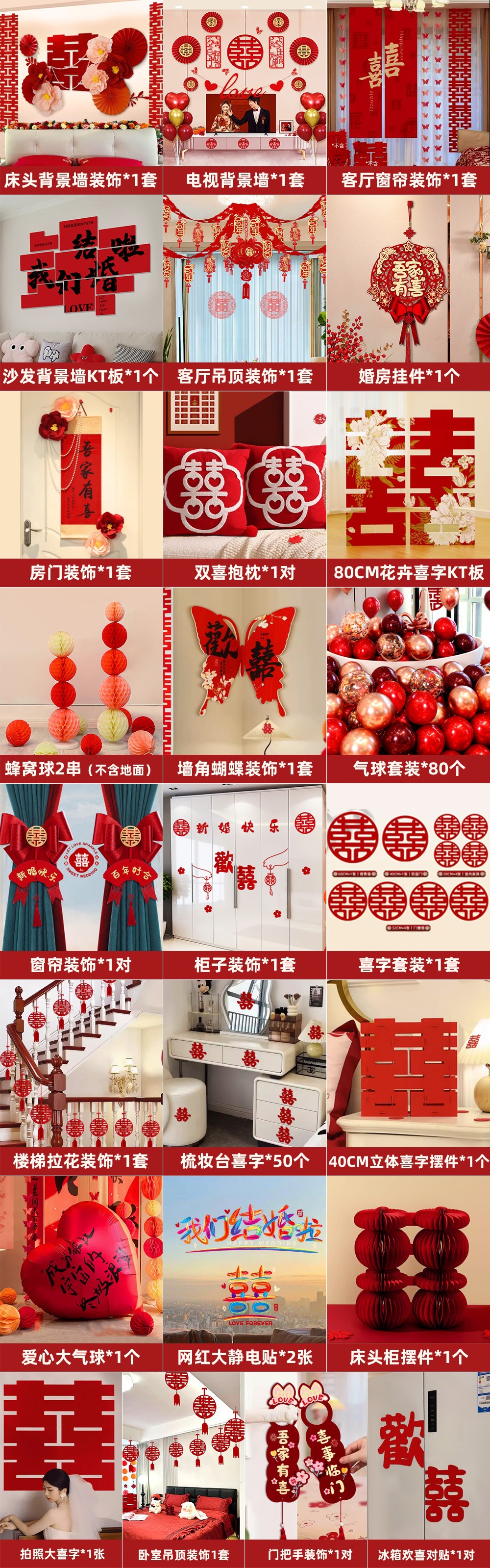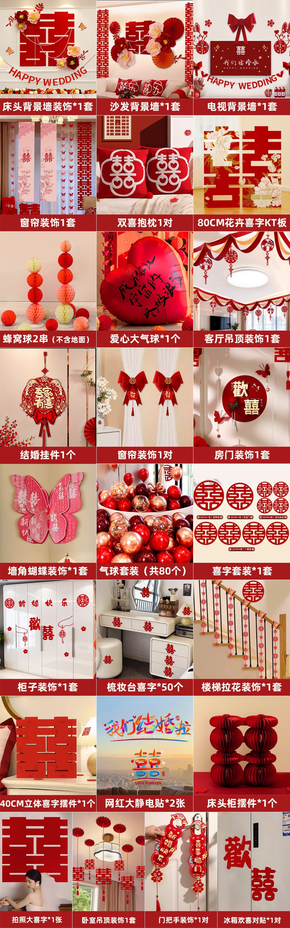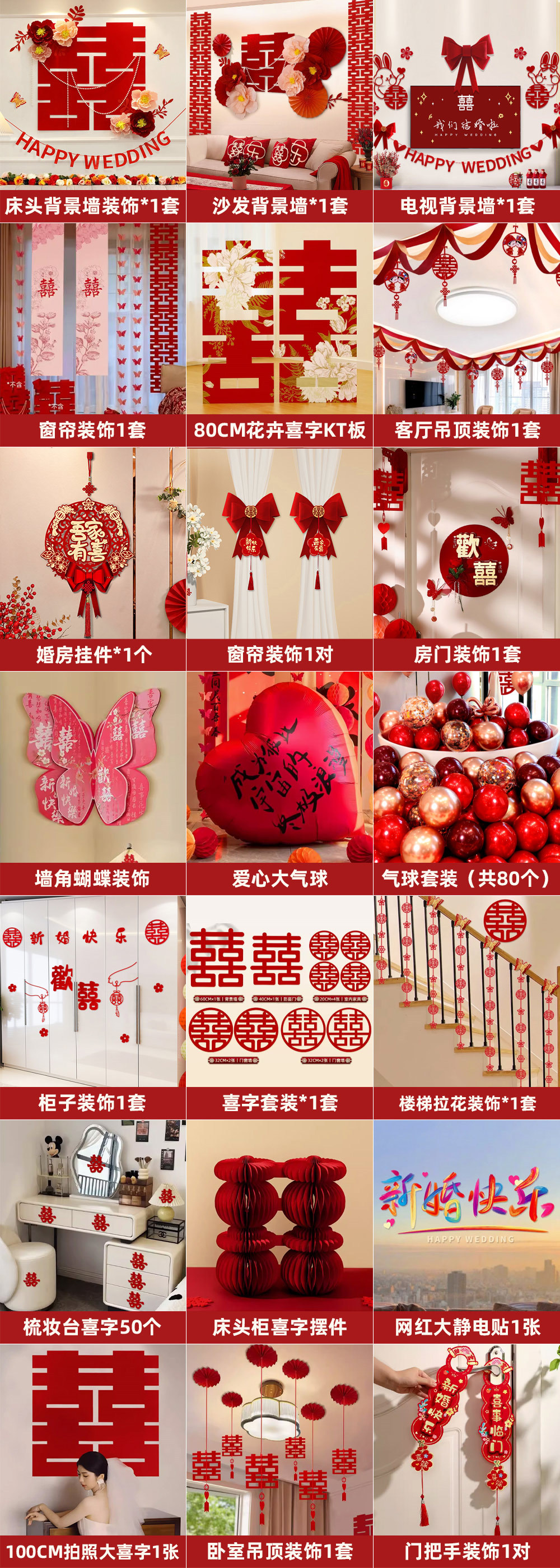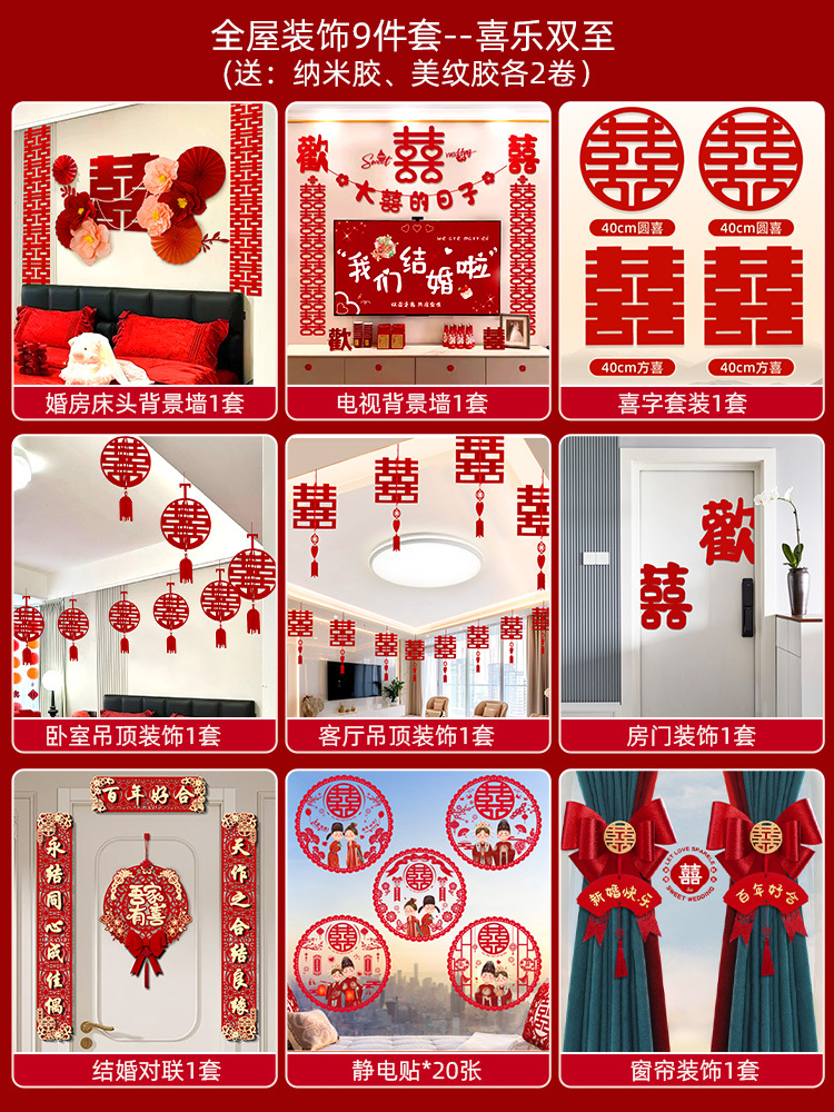 웨딩룸 레이아웃 세트, 웨딩 장식, 남성 웨딩, 새 집, 여성 침실, 집 전체 웨딩 용품