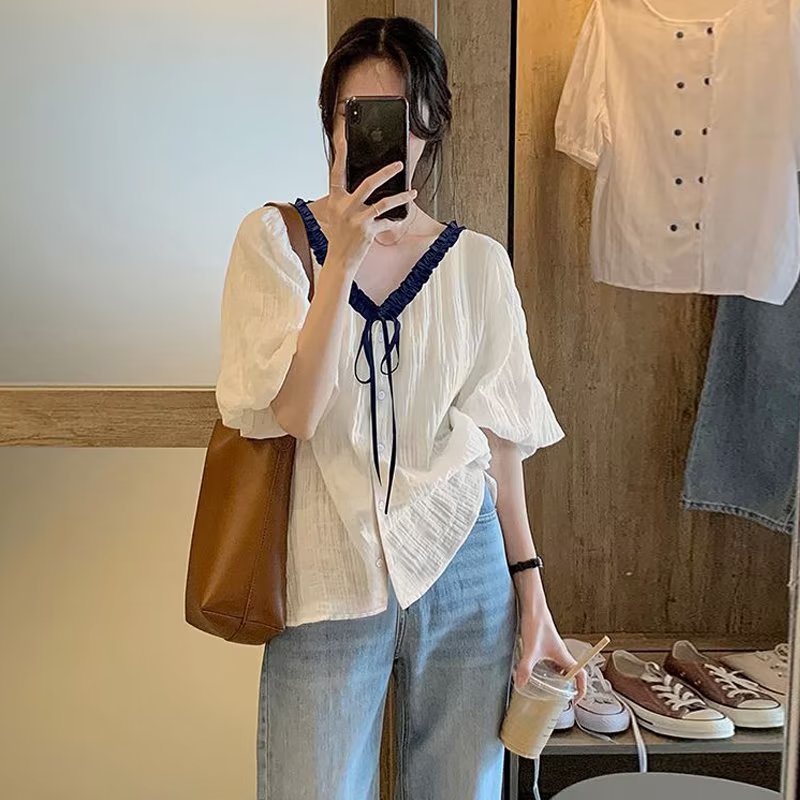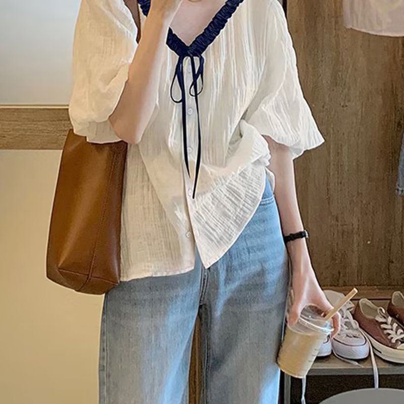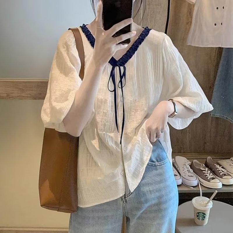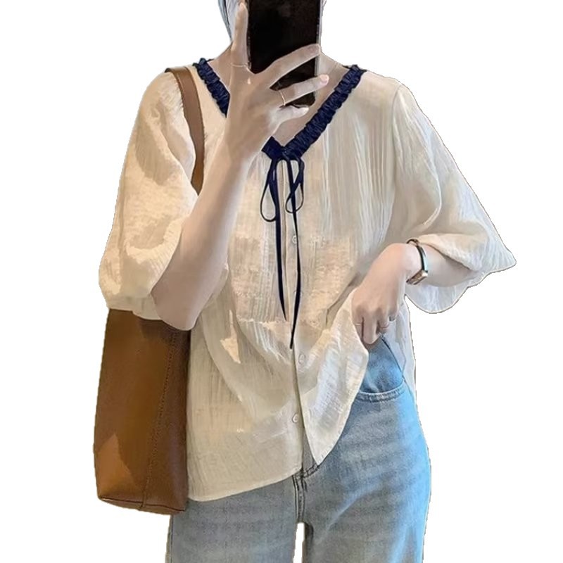 봄, 가을 여성용 다용도 쉬폰 셔츠, 뚱뚱한 소녀를 위한 플러스 사이즈 mmv 칼라 루즈 슬리밍 시크 탑스토어 가기