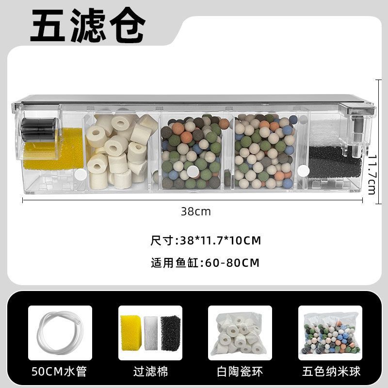 • 5개의 필터 칸 + 생화학 면 + 배양 필터 재료 + 수중 펌프 전체 액세서리