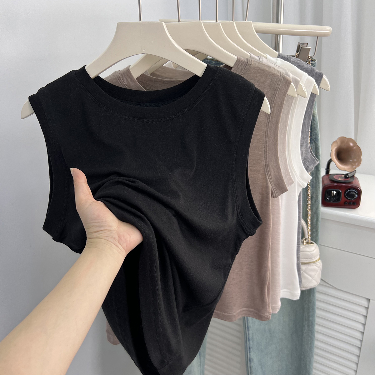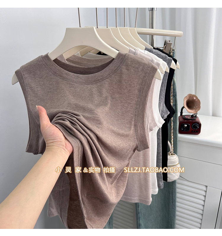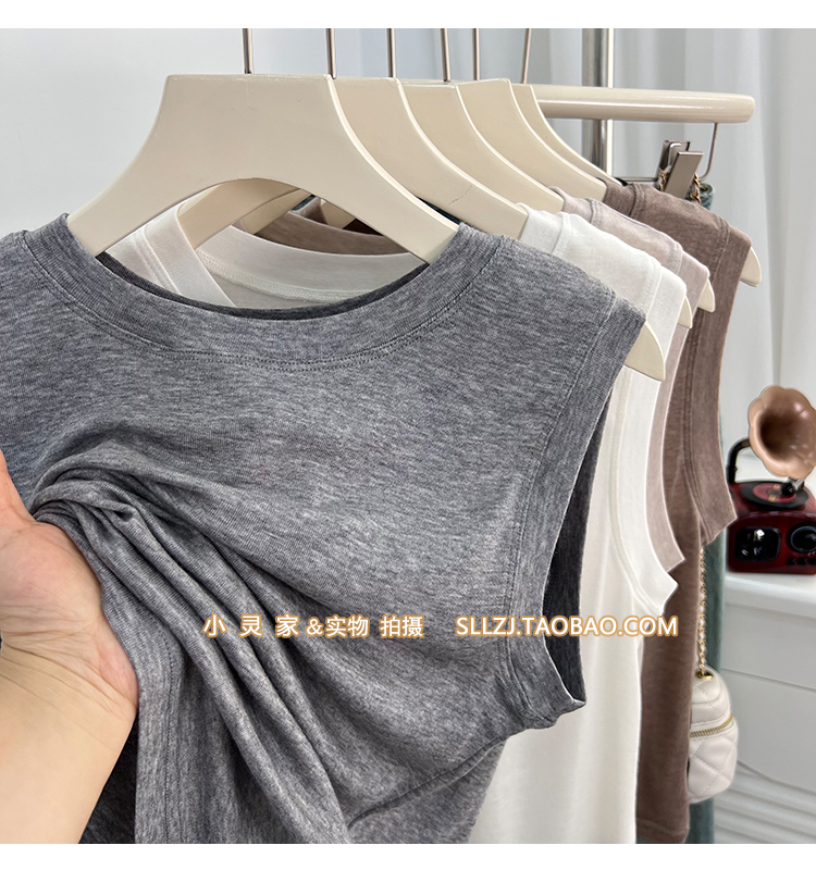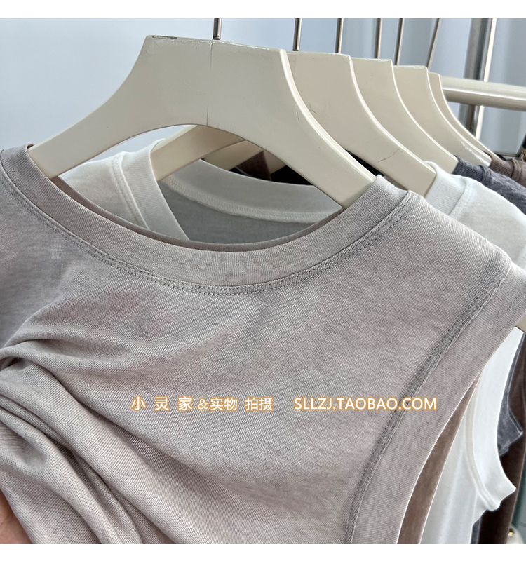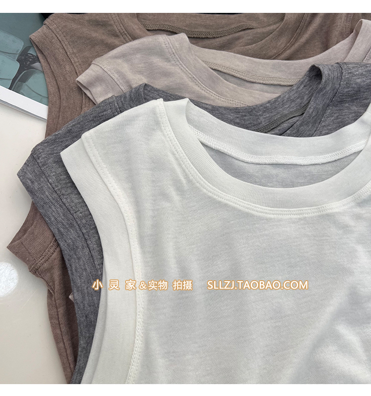 가볍고 부드러운 Lyocell Tencel 조끼 여성 내부 및 외부 여름 커버 쌍 유백색 둥근 목 민소매 티셔츠 탑스토어 가기
