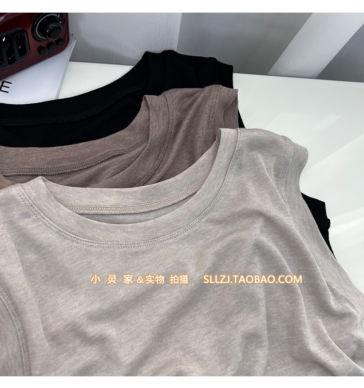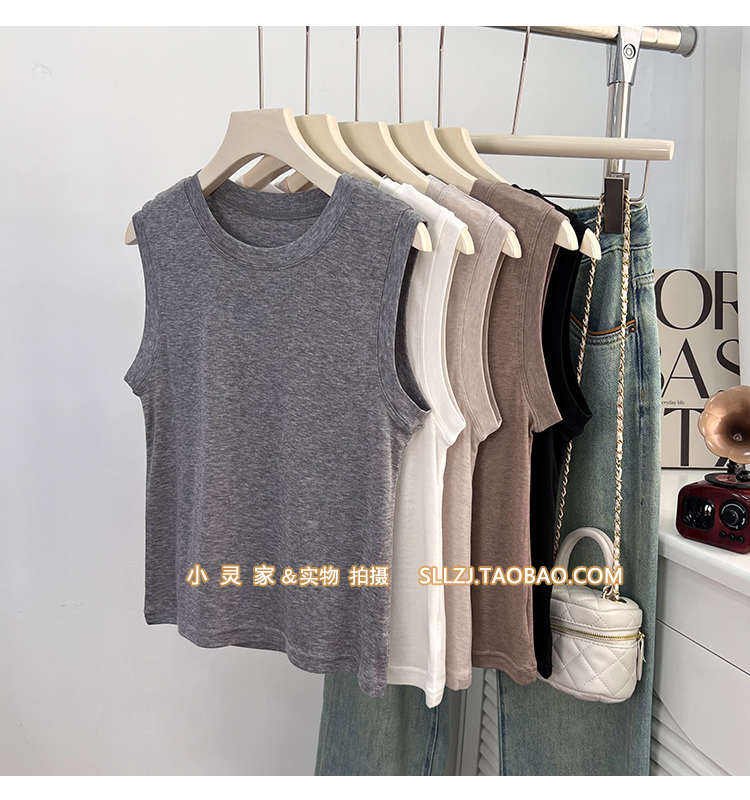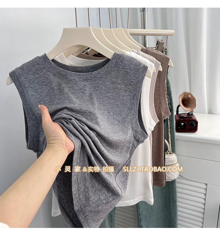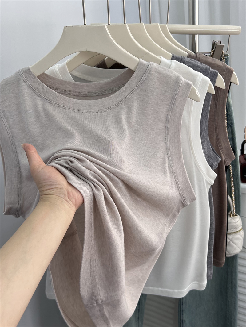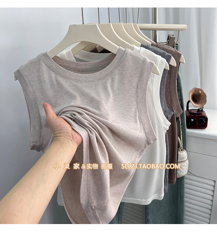 가볍고 부드러운 Lyocell Tencel 조끼 여성 내부 및 외부 여름 커버 쌍 유백색 둥근 목 민소매 티셔츠 탑스토어 가기