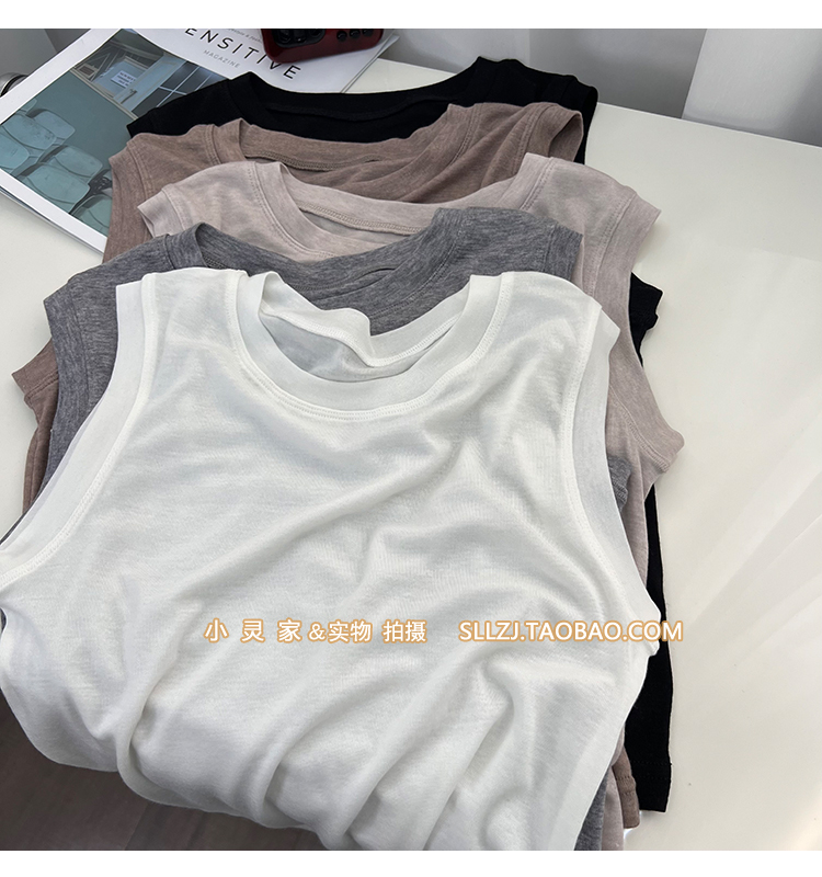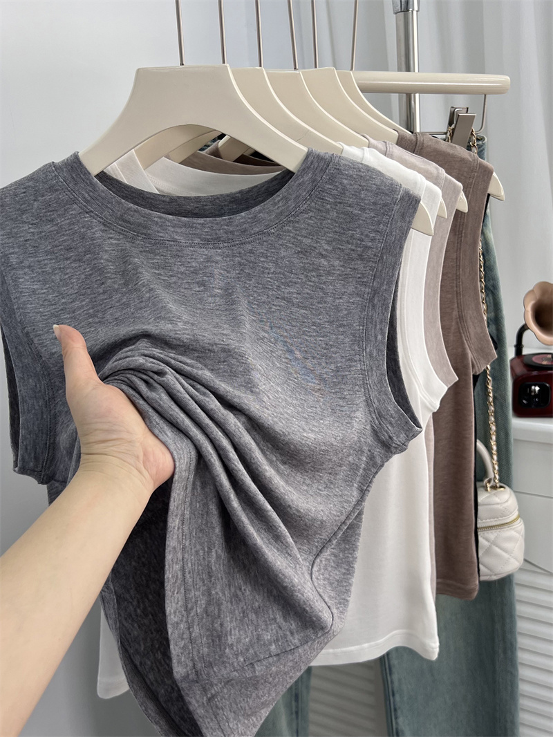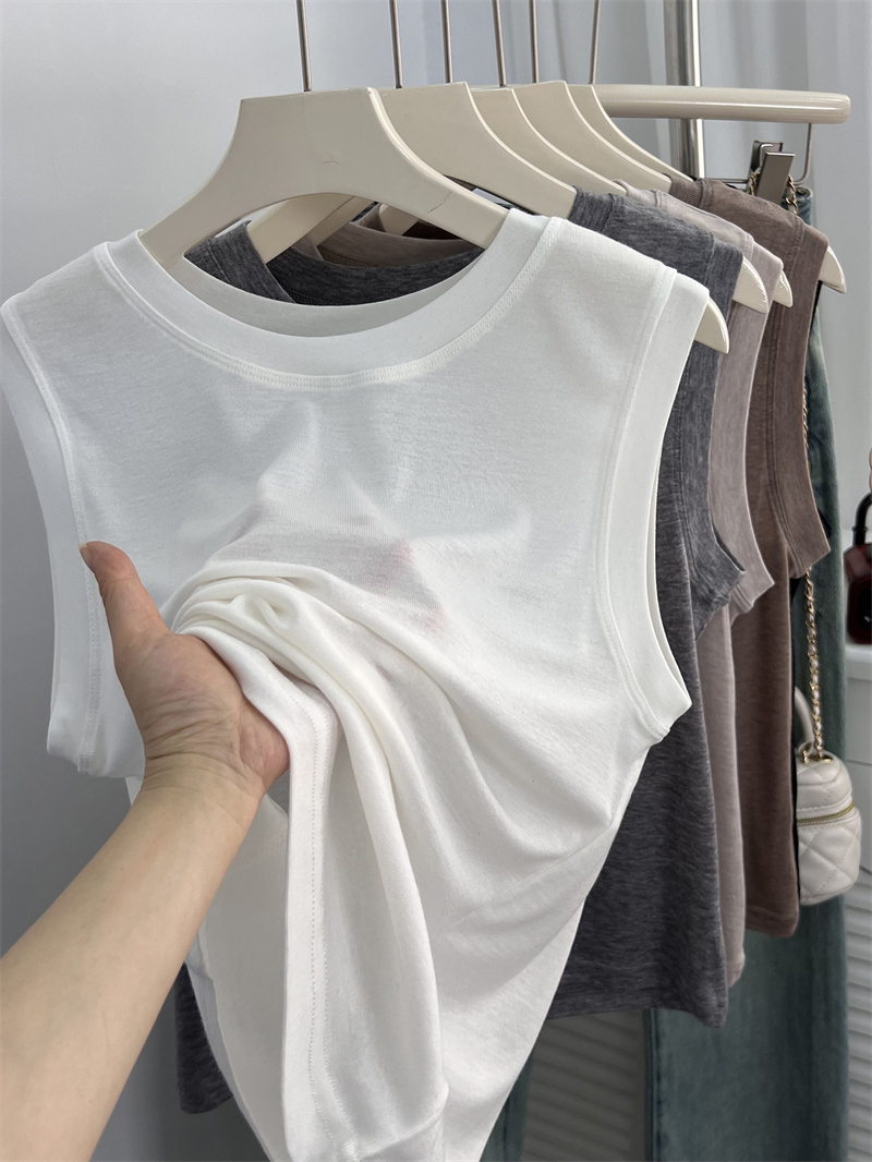 가볍고 부드러운 Lyocell Tencel 조끼 여성 내부 및 외부 여름 커버 쌍 유백색 둥근 목 민소매 티셔츠 탑
