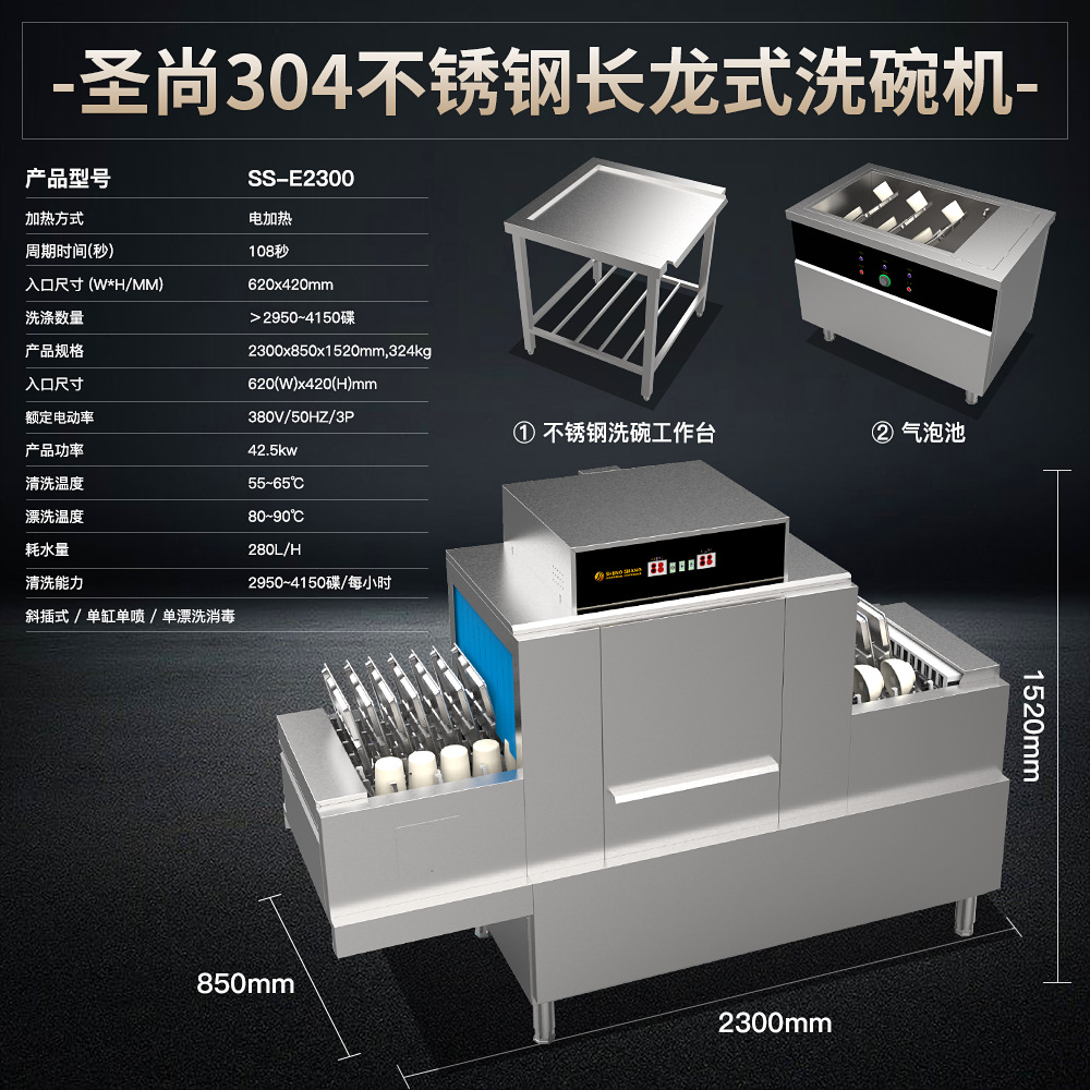 SS-E2300 소형 긴 레인보우 식기 세척기 학교 병원 공장 캔틴 호텔 레스토랑 상업용 완전 자동스토어 가기