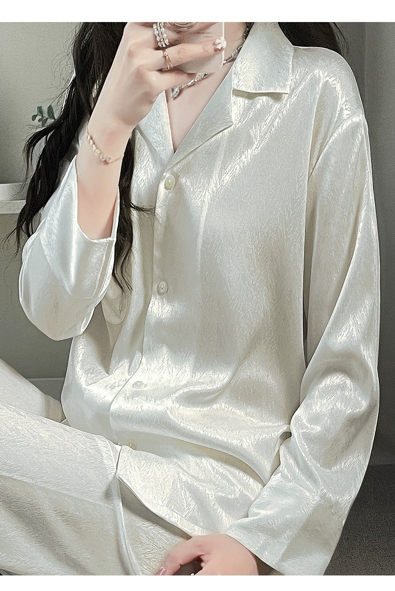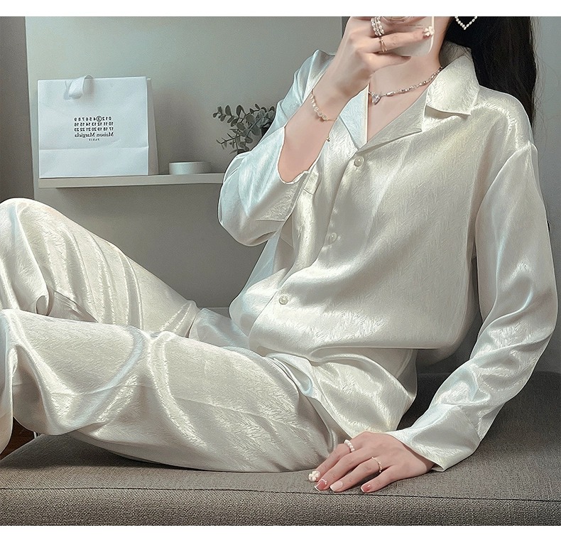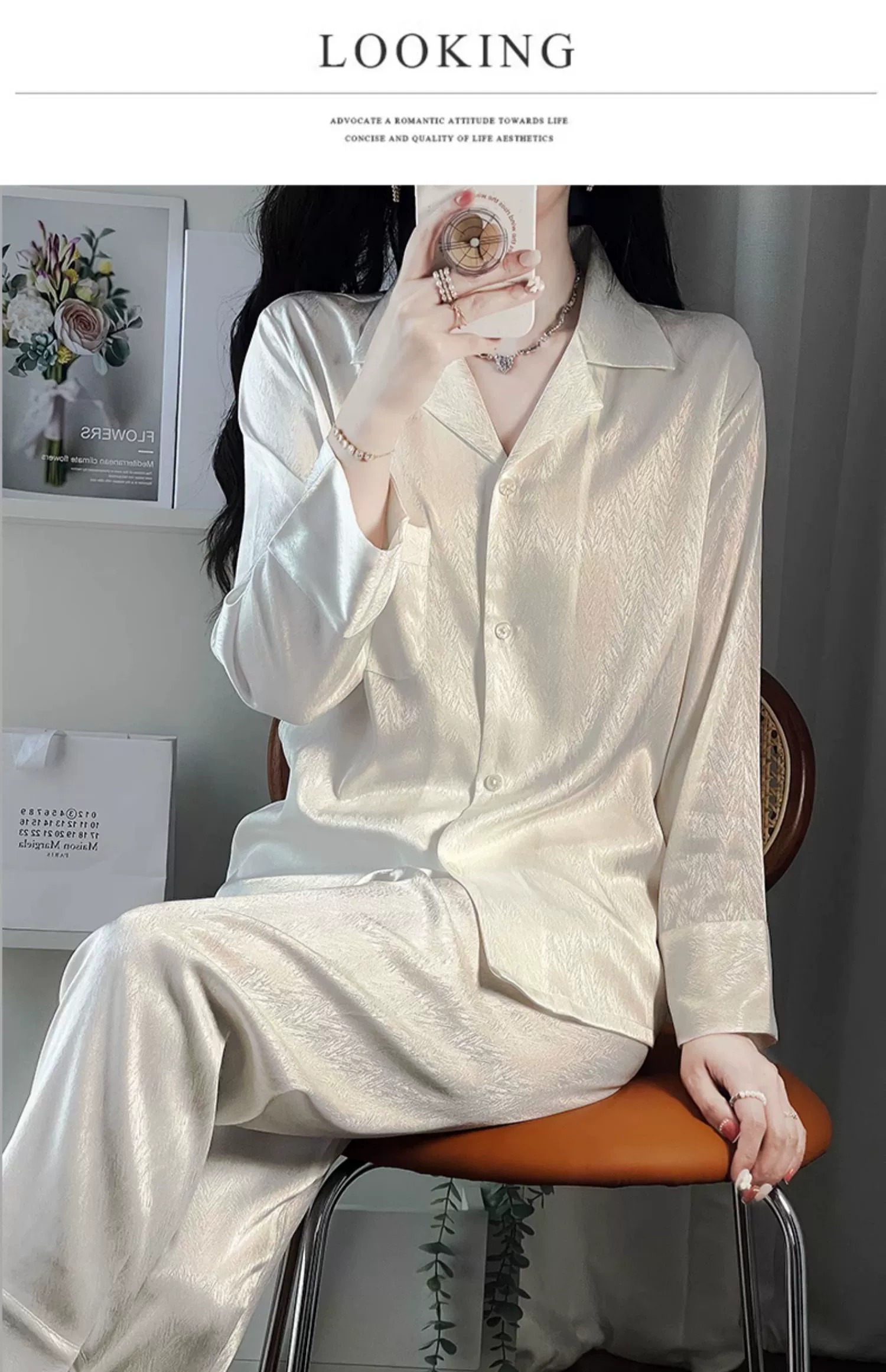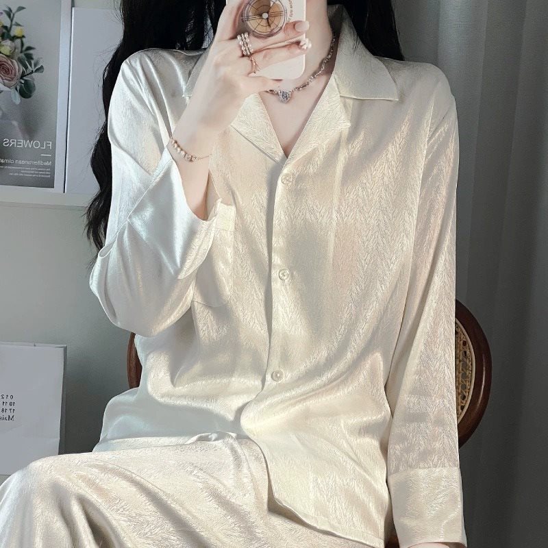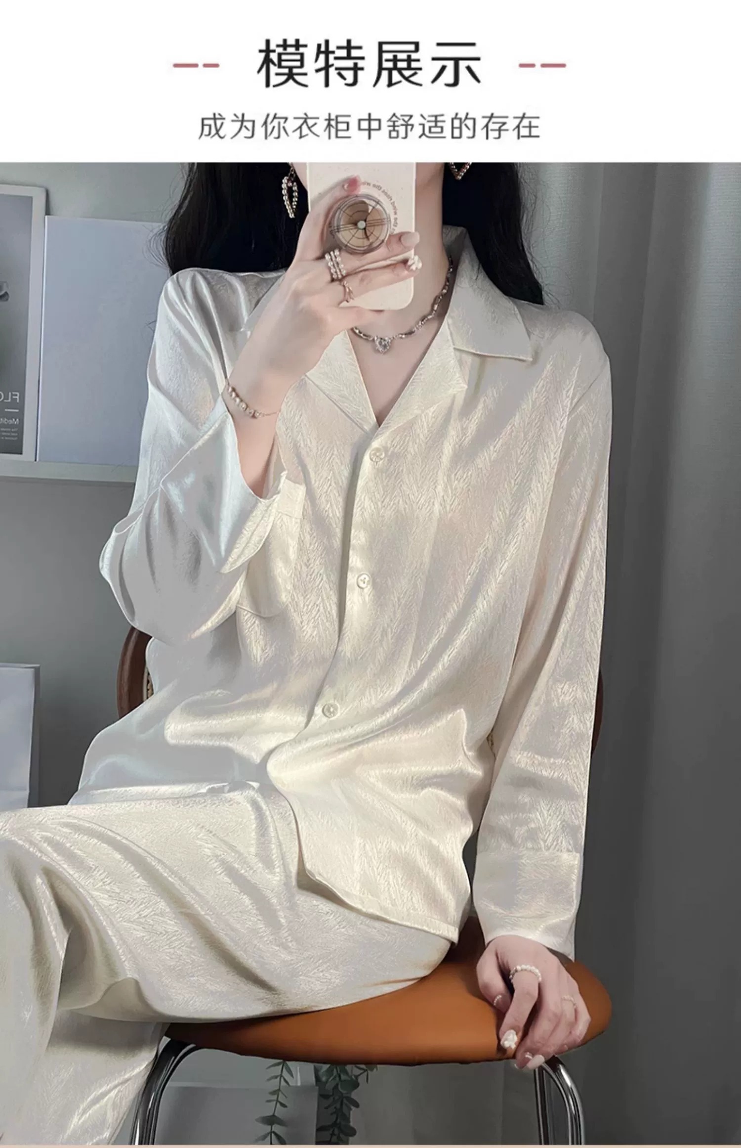 여성을위한 하이 엔드 얼음 실크 잠옷 봄, 가을 긴팔 2024 새로운 하이 엔드 모조 실크 여름 홈웨어 세트
