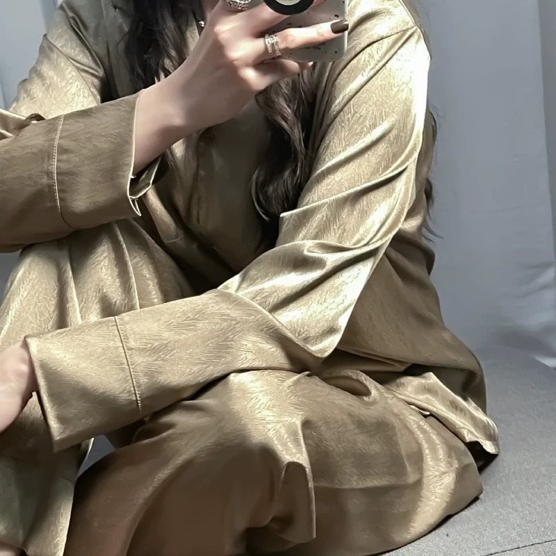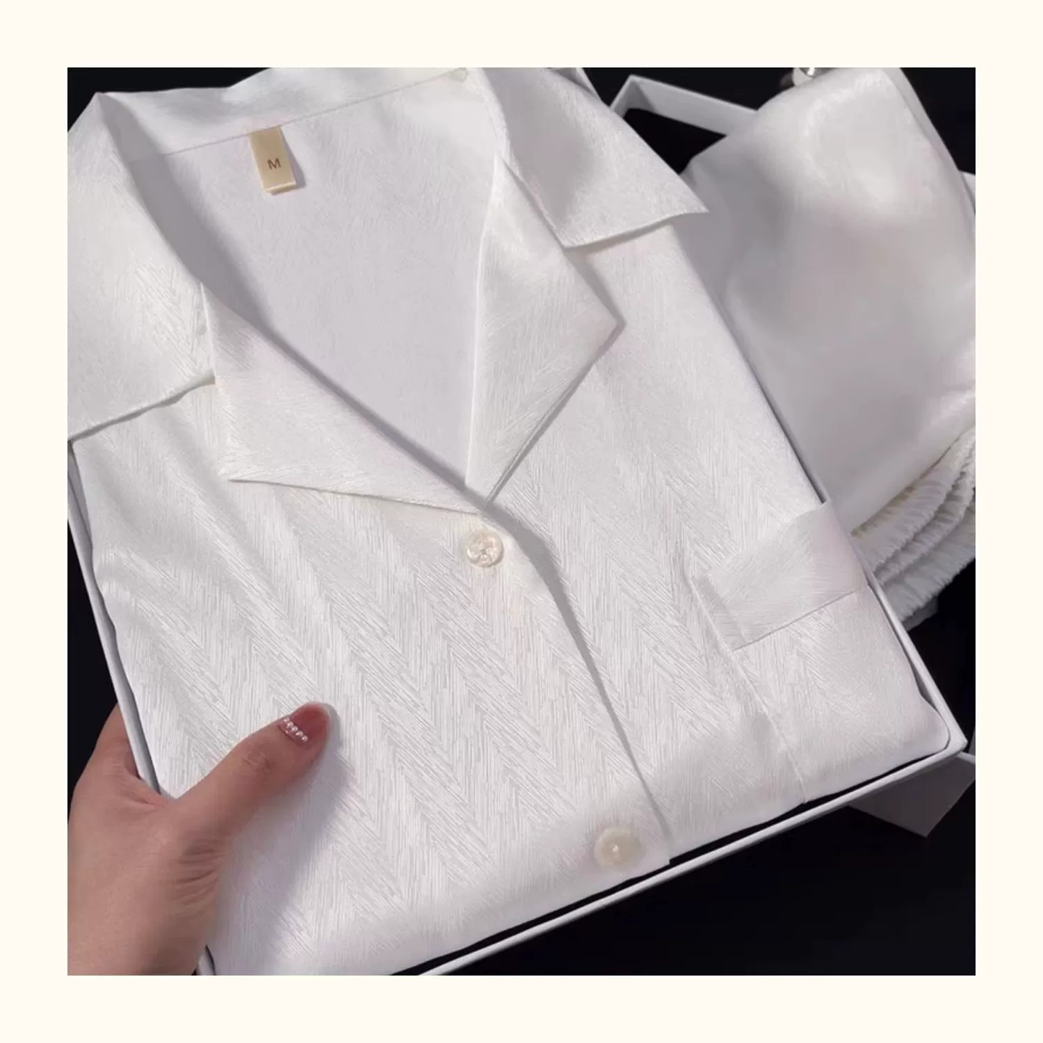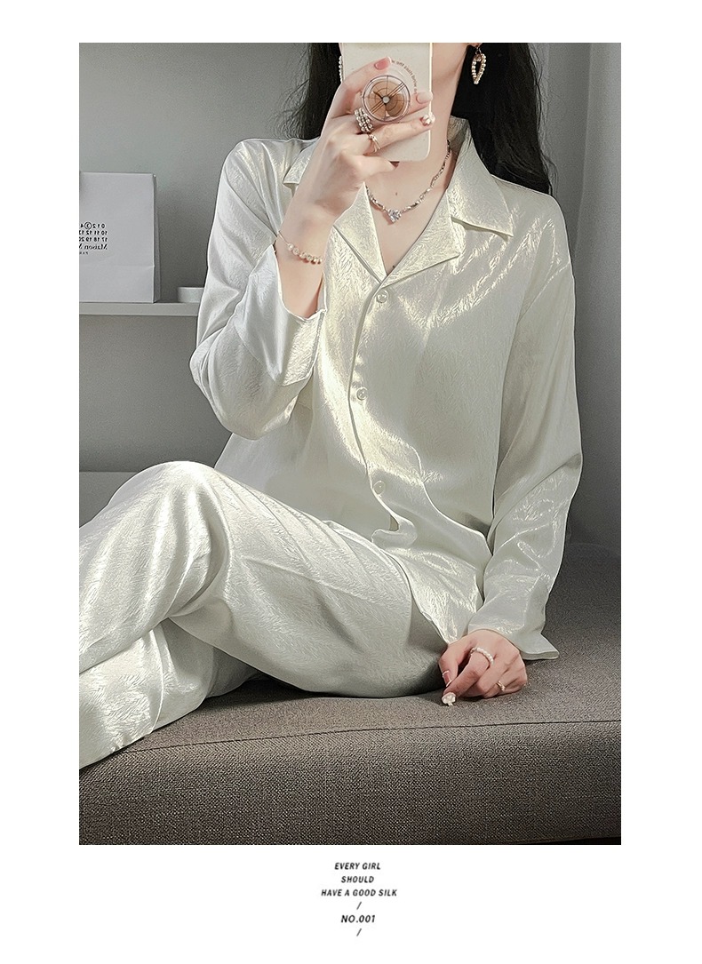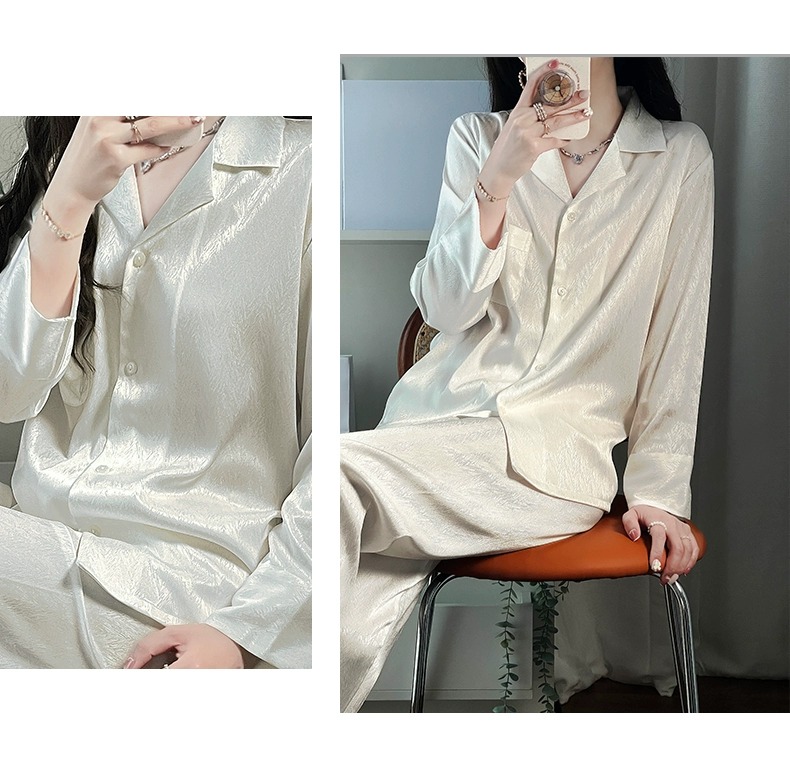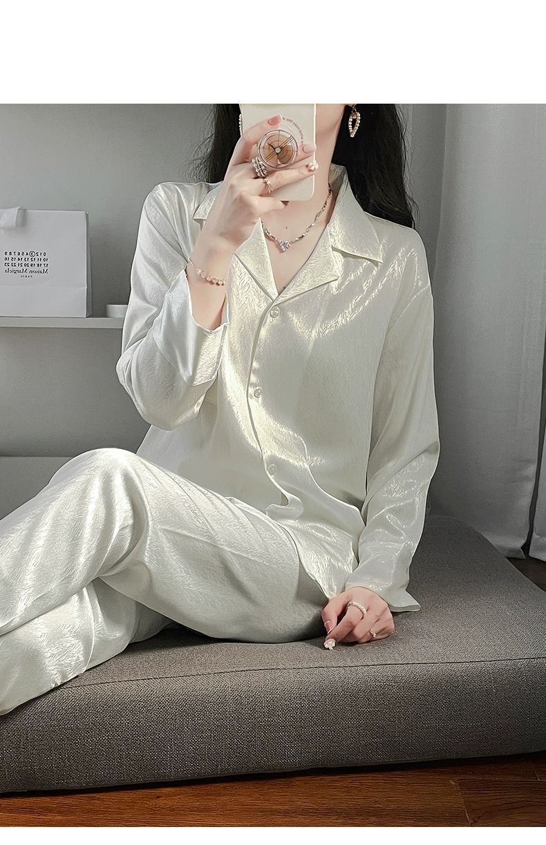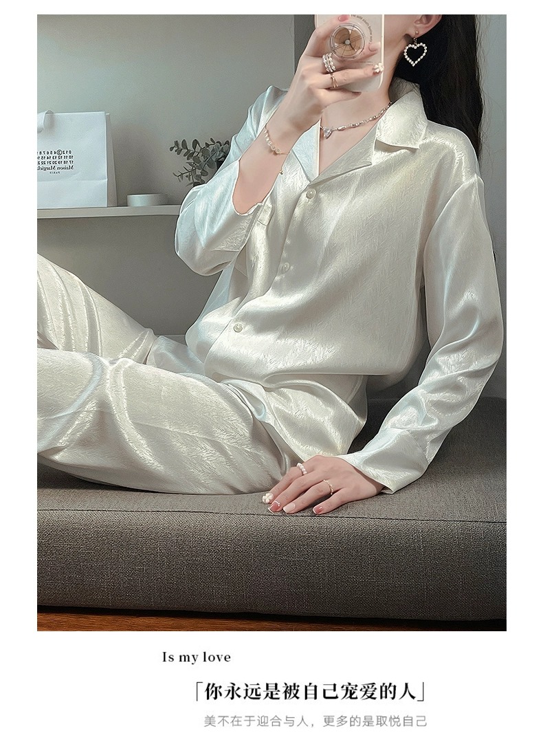 여성을위한 하이 엔드 얼음 실크 잠옷 봄, 가을 긴팔 2024 새로운 하이 엔드 모조 실크 여름 홈웨어 세트