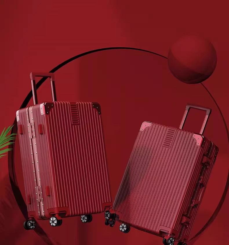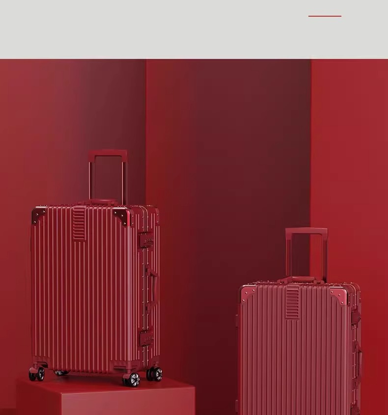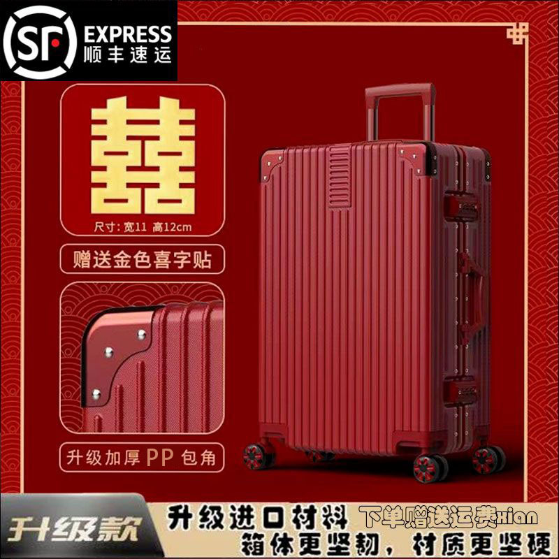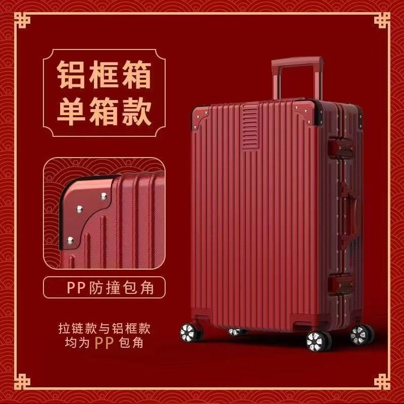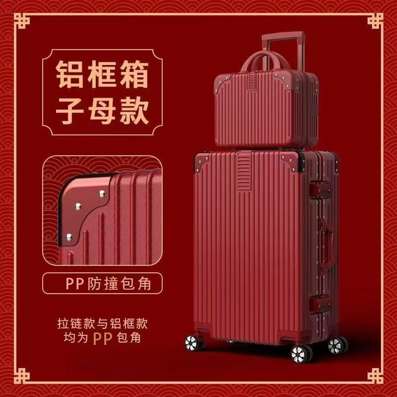 Ouyu 웨딩 가방 와인 레드 결혼식 상자 여성 트롤리 케이스 웨딩 신부 메이크업 비밀번호 가죽 상자스토어 가기