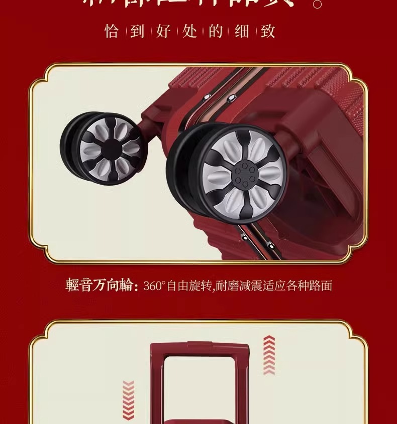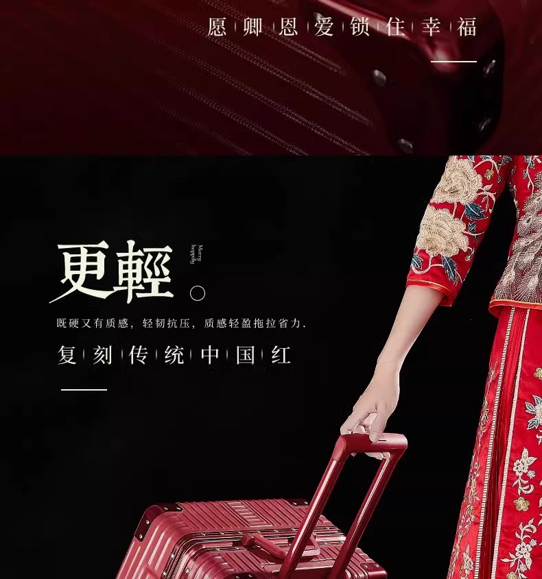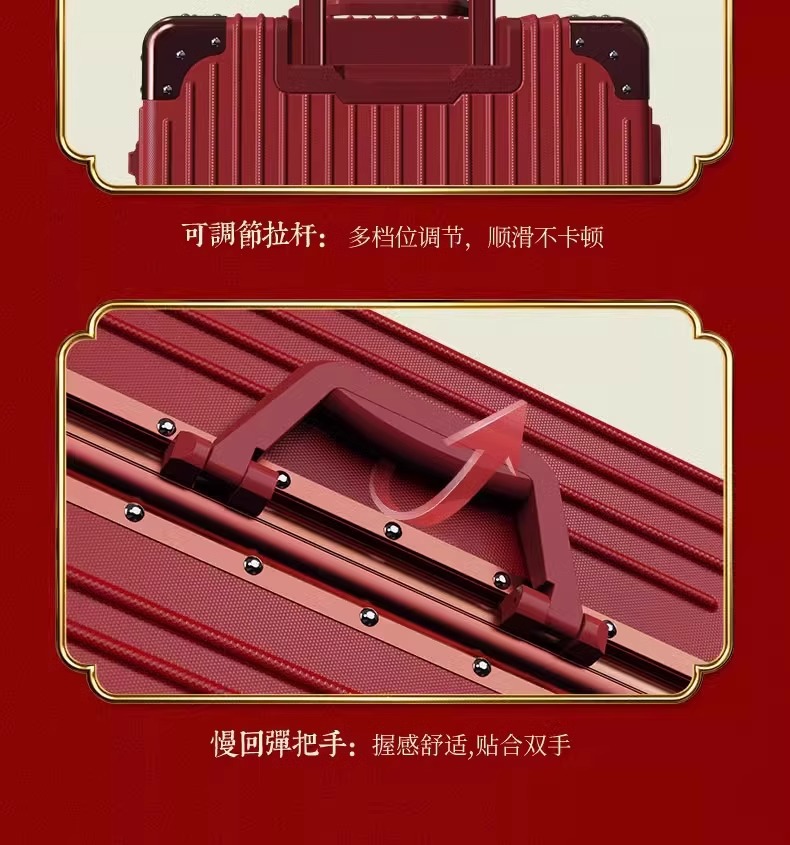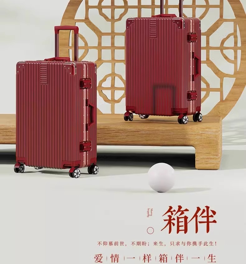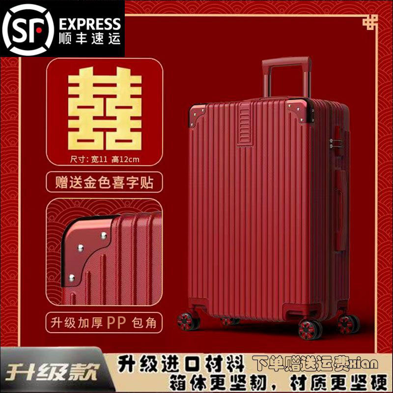 Ouyu 웨딩 가방 와인 레드 결혼식 상자 여성 트롤리 케이스 웨딩 신부 메이크업 비밀번호 가죽 상자스토어 가기
