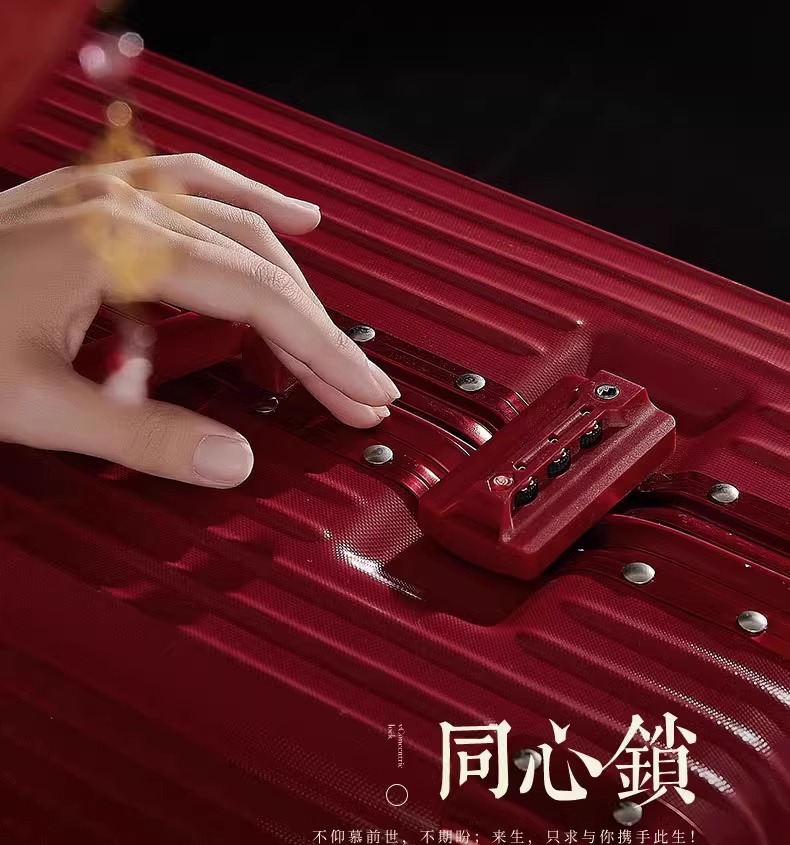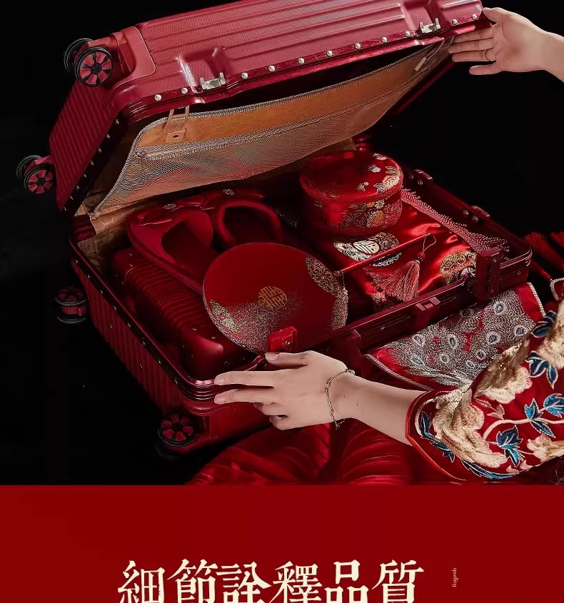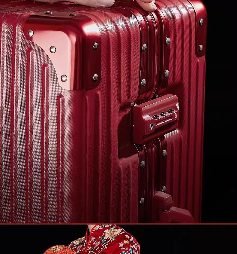 Ouyu 웨딩 가방 와인 레드 결혼식 상자 여성 트롤리 케이스 웨딩 신부 메이크업 비밀번호 가죽 상자
