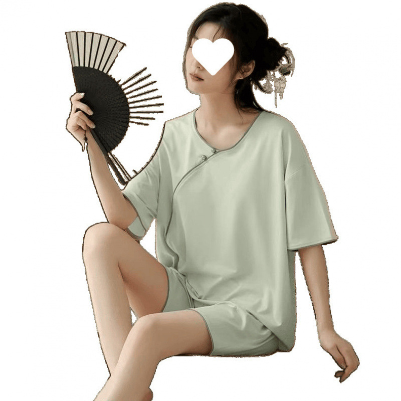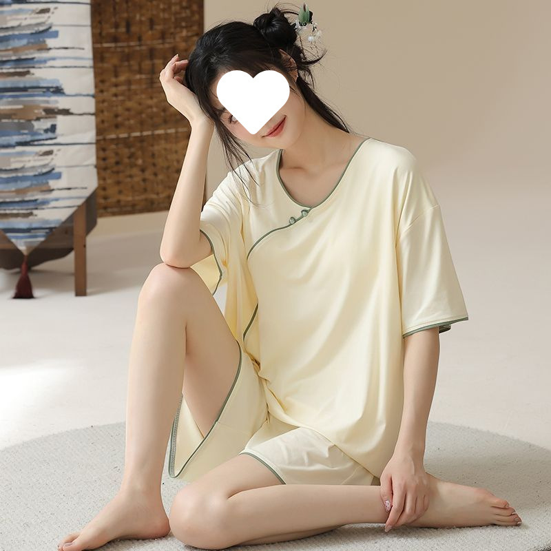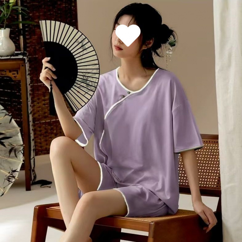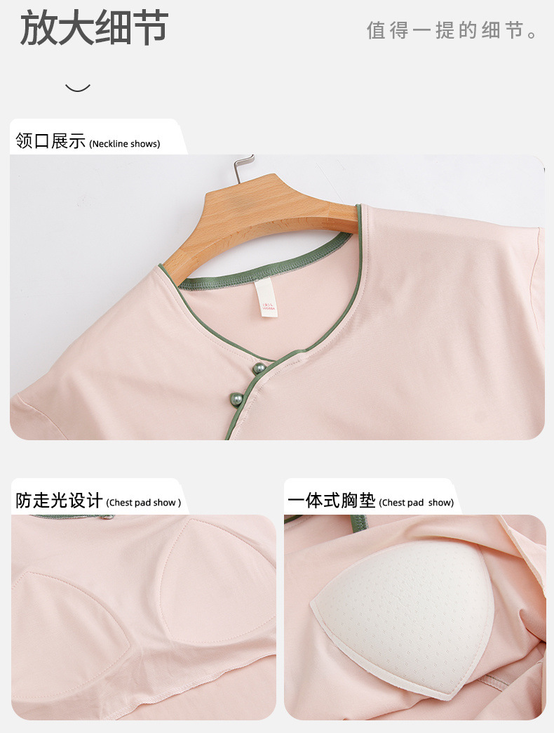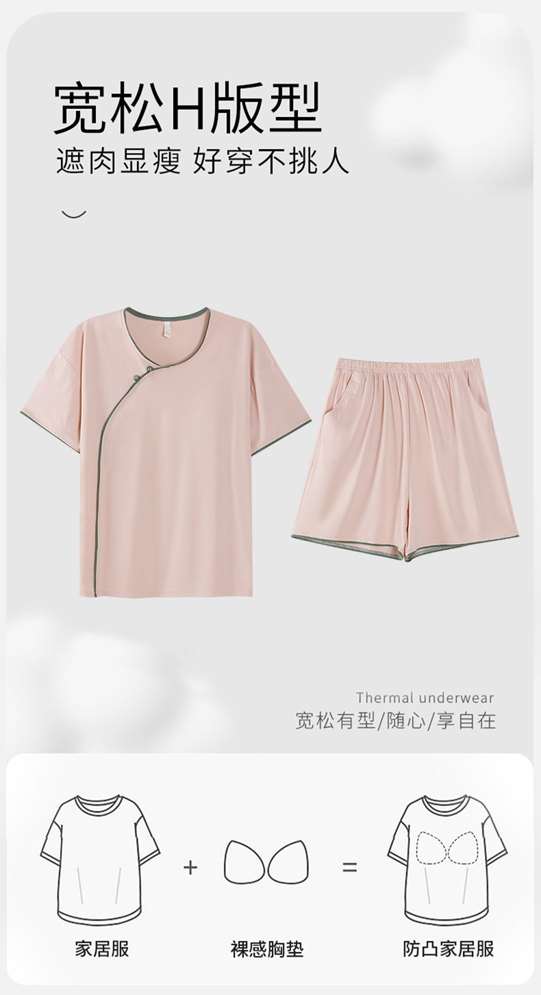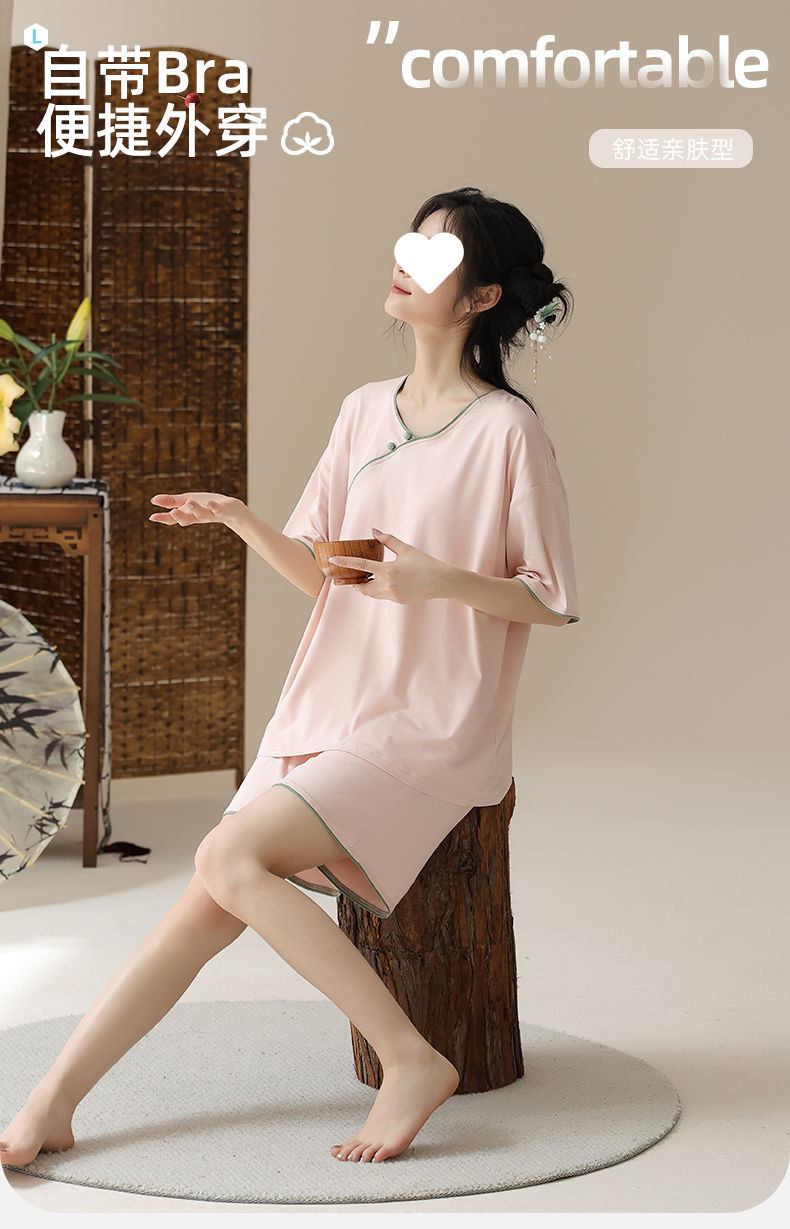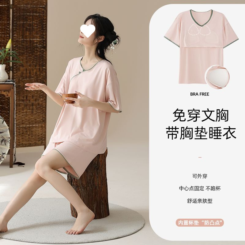 모달, 가슴 패드 잠옷 여름 얇은 시원한 플러스 사이즈 홈 옷 여성 하이 엔드 새로운 중국 골동품 세트