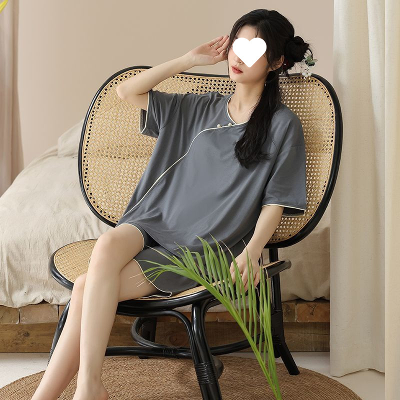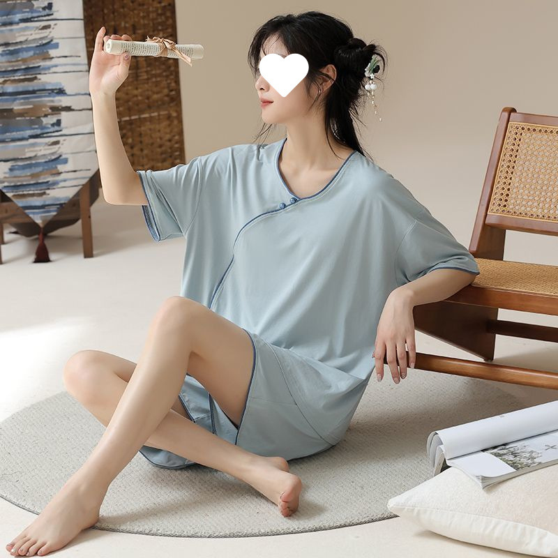 모달, 가슴 패드 잠옷 여름 얇은 시원한 플러스 사이즈 홈 옷 여성 하이 엔드 새로운 중국 골동품 세트스토어 가기