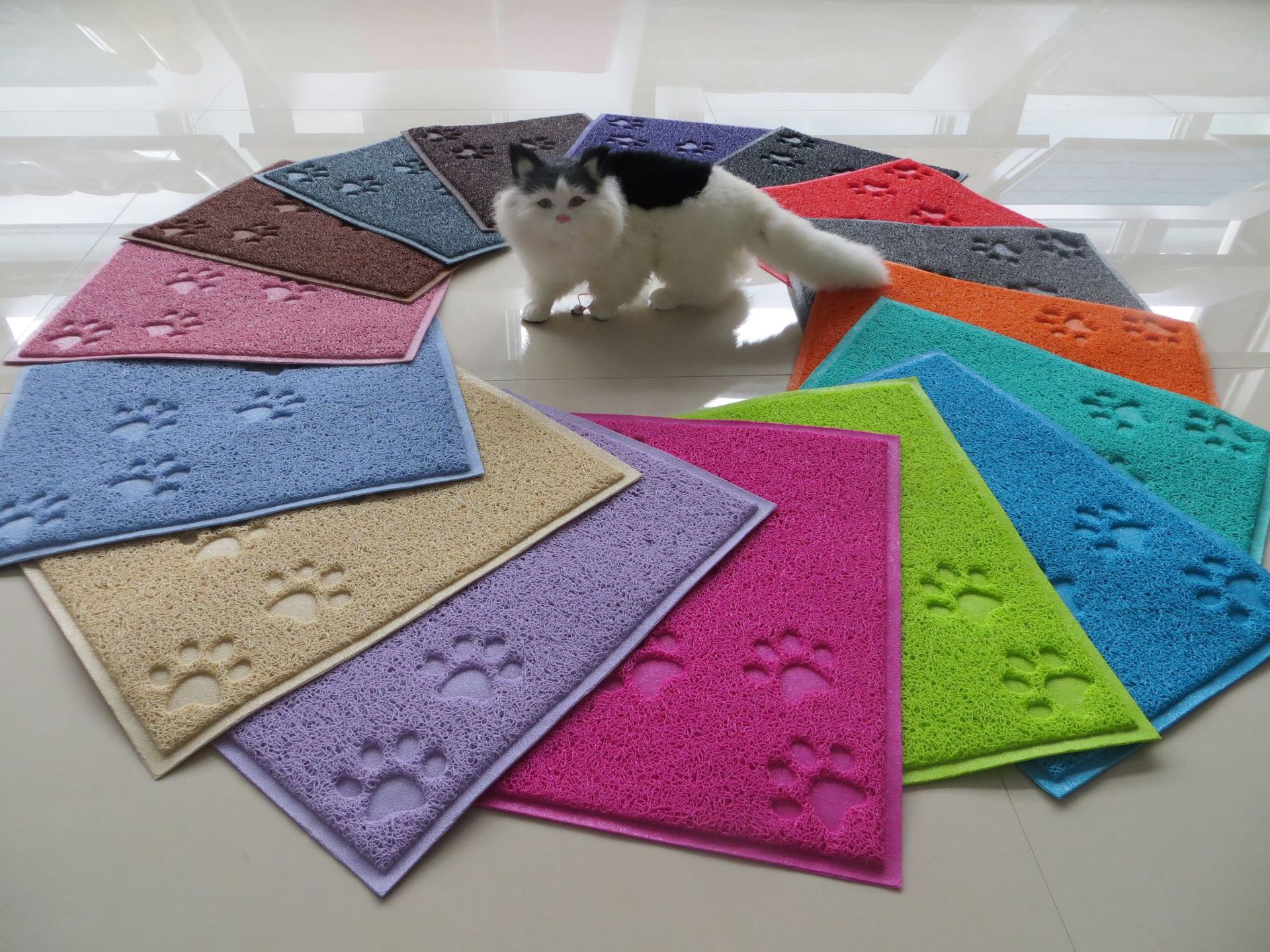 새로운 PVC 사각형 고양이 와이어 링 애완 동물 매트, 미끄럼 방지, 먼지 방지 및 고양이 모래 방지 애완 동물 발 매트스토어 가기