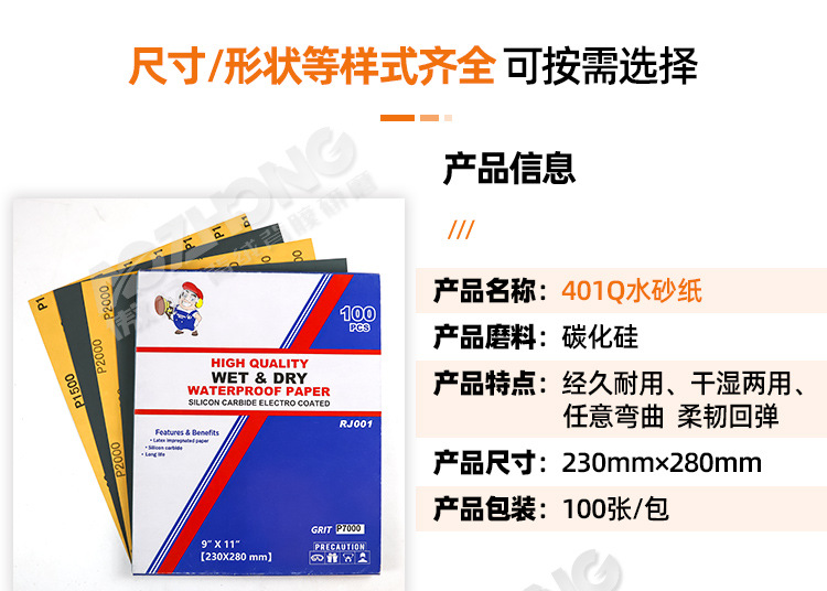 Aozhong 401Q 물 연마 종이 세금 플러스 플랫 프라이머 오래된 페인트 제거 바니시 정밀 광택 물 연마 종이
