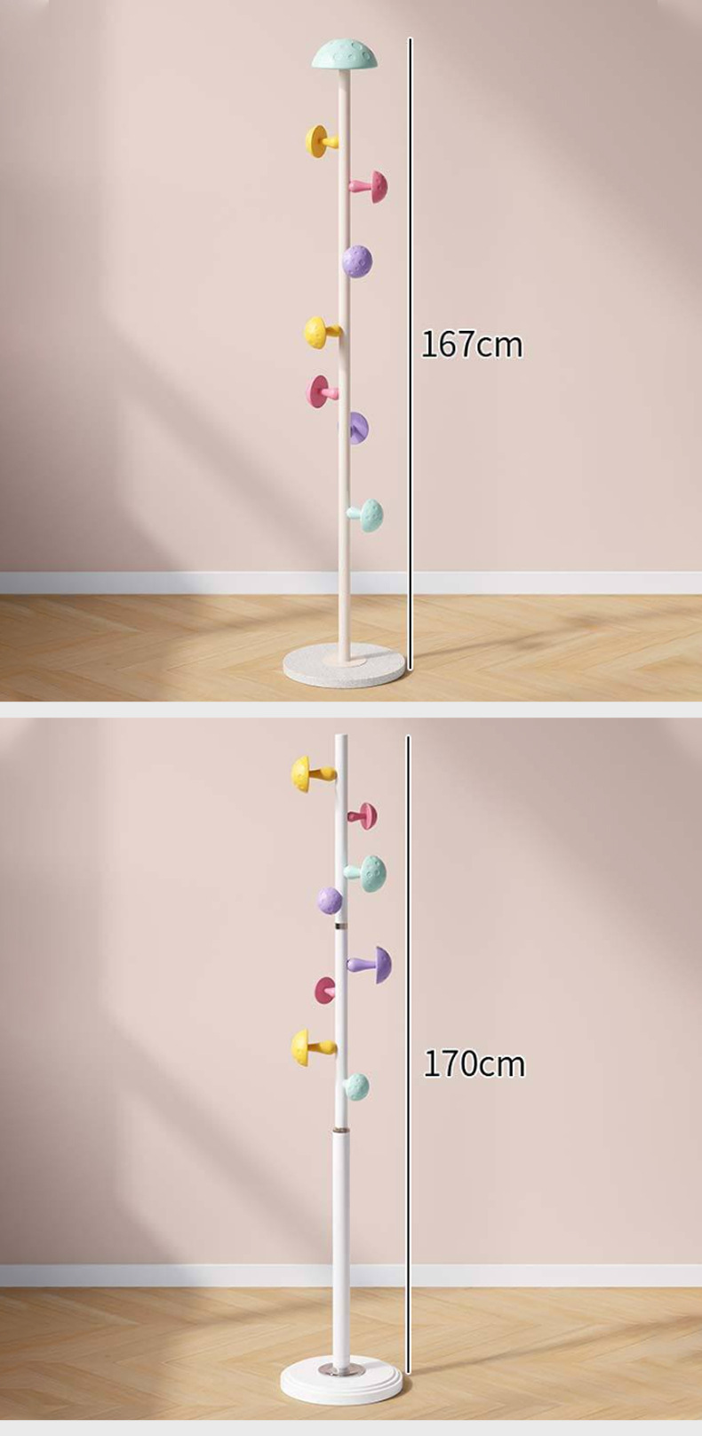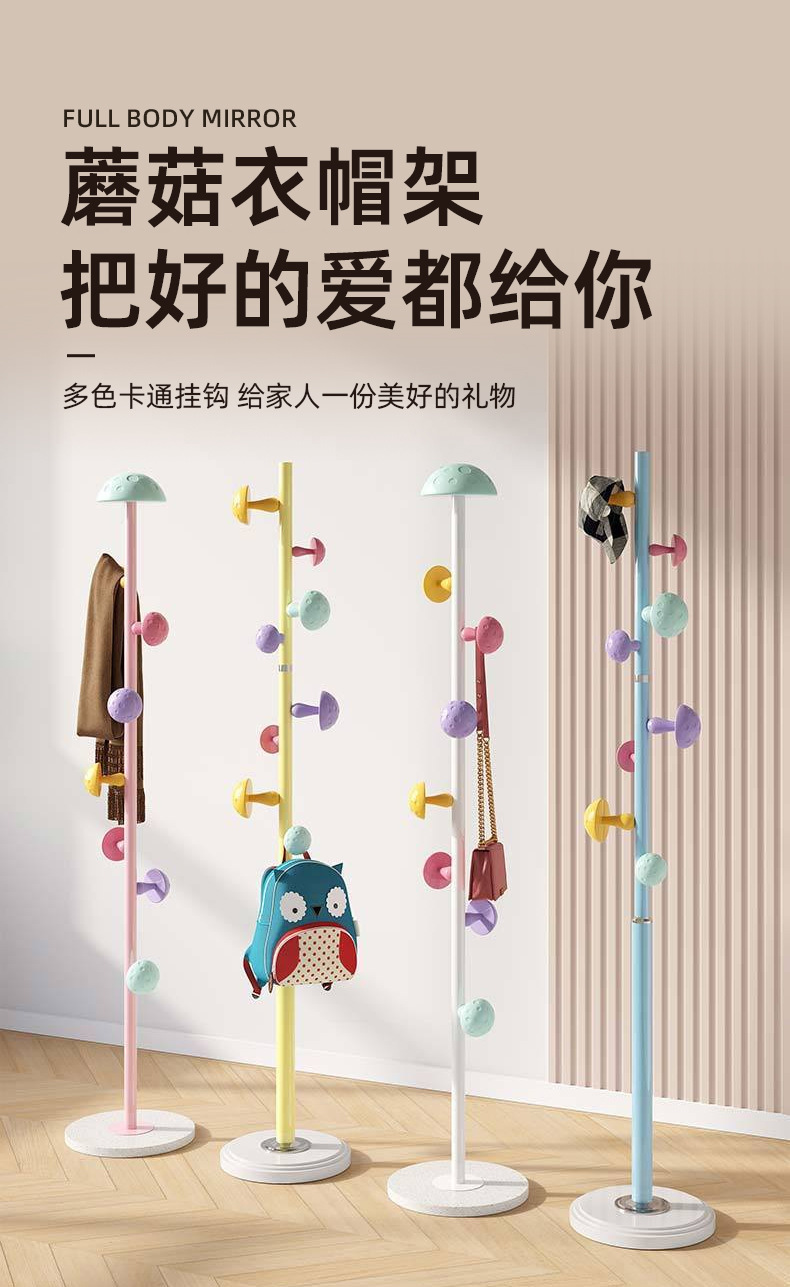 수직 옷걸이, 바닥 옷걸이, 컬러 만화 어린이 옷걸이, 바닥 스토리지 랙, 작은 버섯 옷걸이