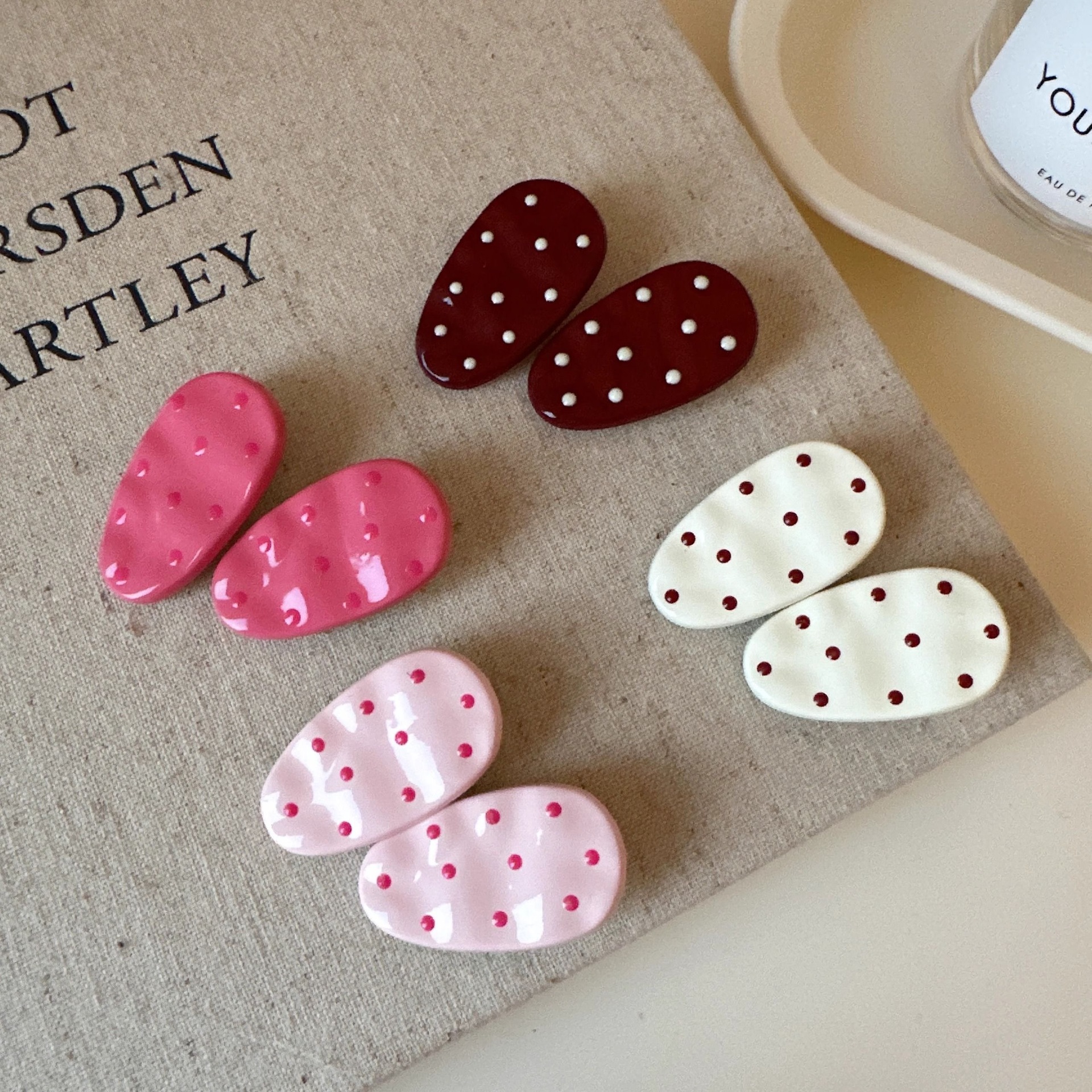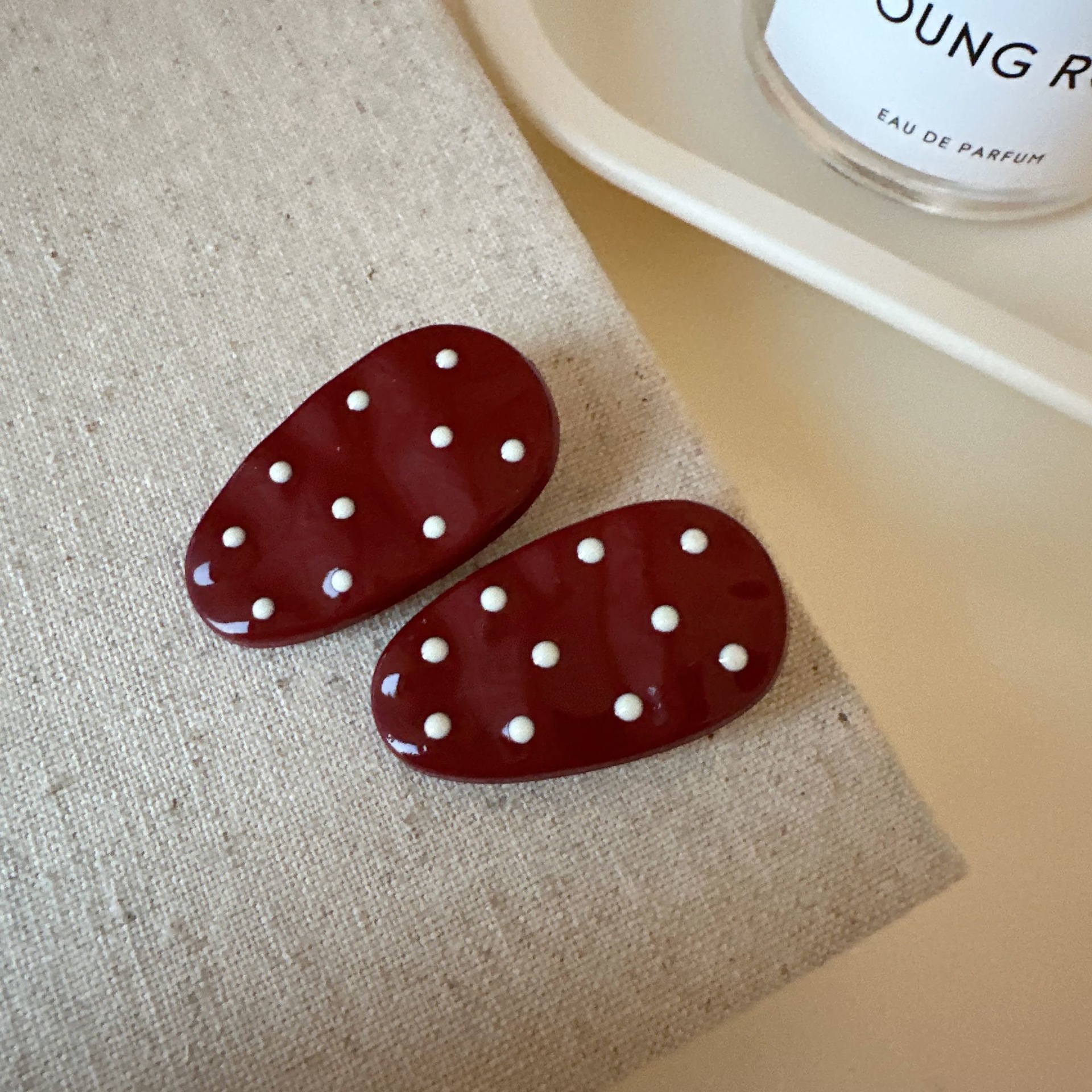 • 도트무늬 물방울 머리핀 [로즈레드]