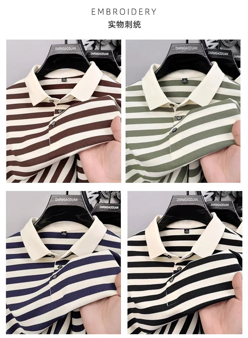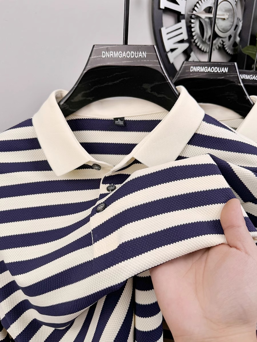 여름 신작 남성 스트라이프 반팔 셔츠 고급 라펠 셔츠 루즈한 대형 다용도 탑 남성 2025스토어 가기