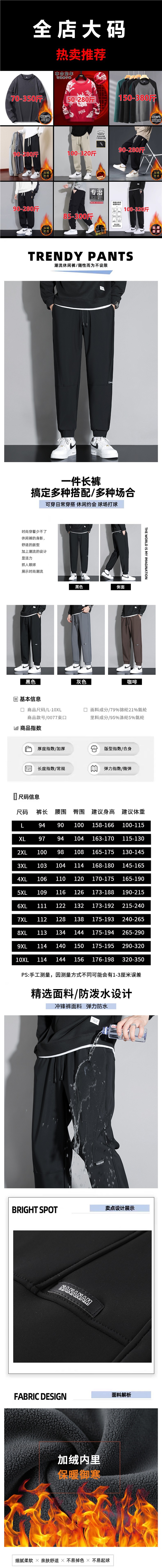 플러스 사이즈 150kg 봄, 가을 남성용 캐주얼 바지 야외 방풍 및 방수 충전 바지 플러스 뚱뚱한 남성용 스트레이트 팬츠