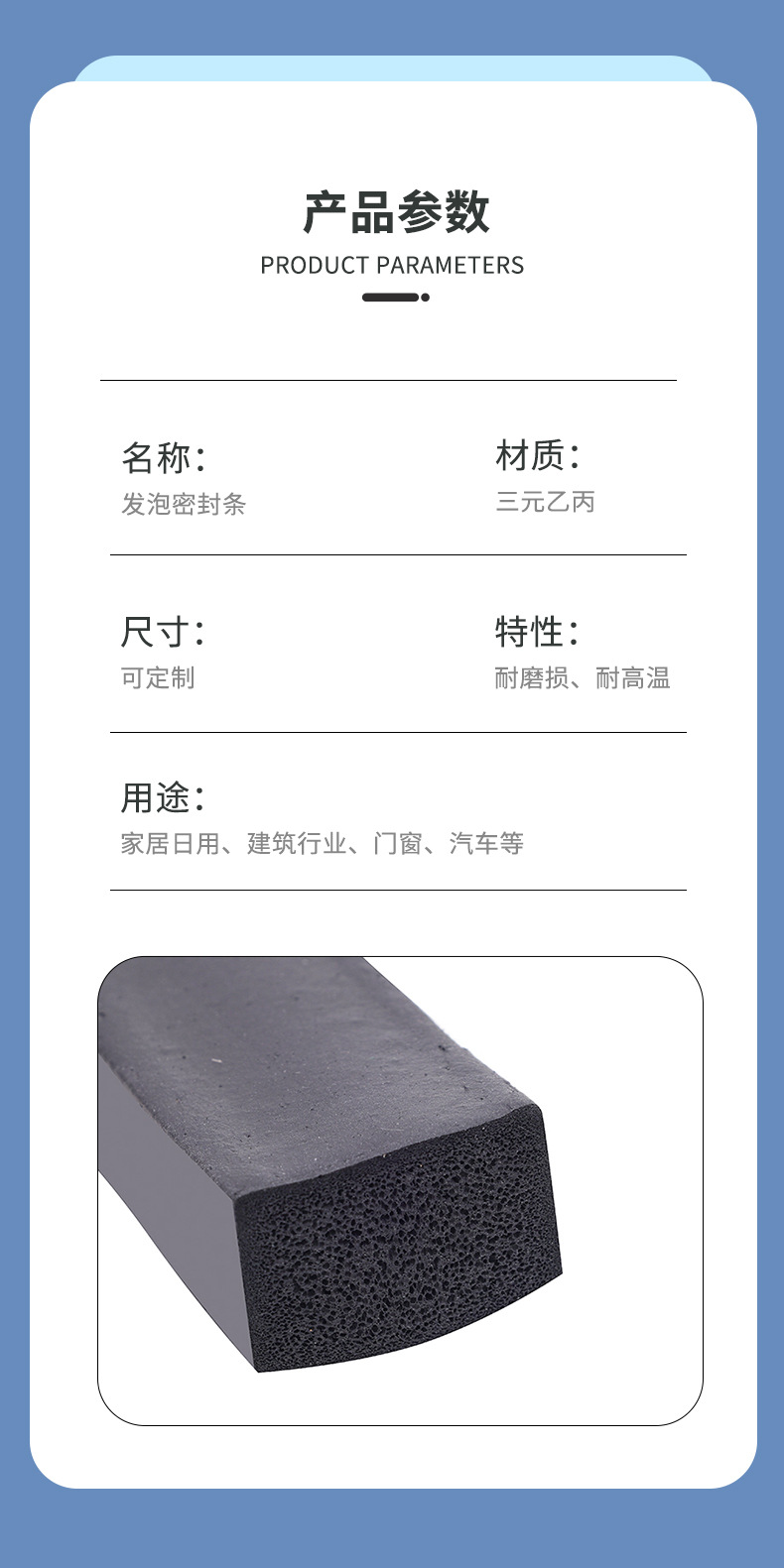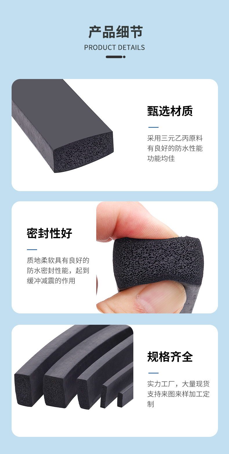 맞춤형 EPDM 창문 간격 폼 씰링 스트립, 내마모성 전기 캐비닛 및 캐비닛 충돌 방지 사각형 씰링 스트립