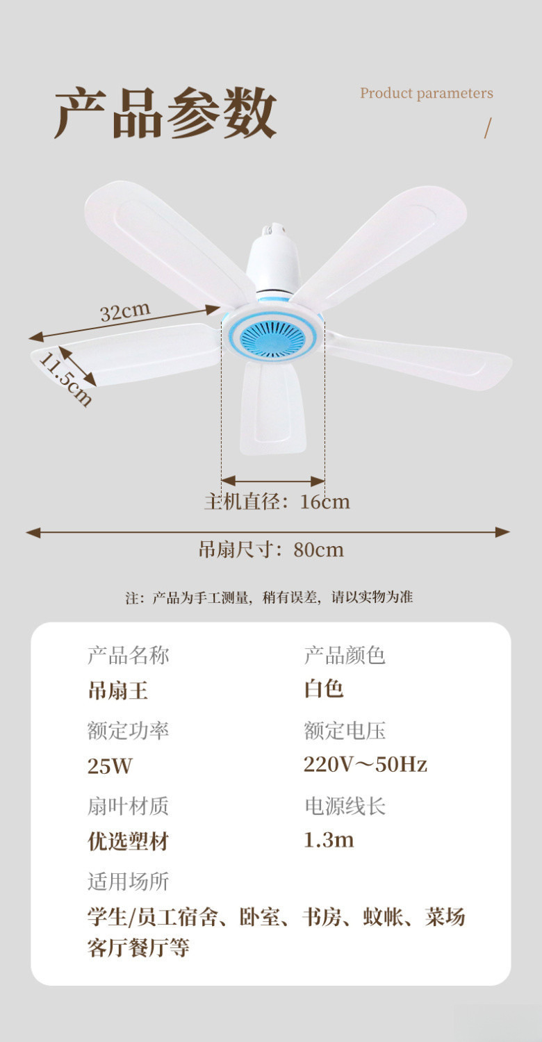 가정용 대형 천장 팬 거실 침실 학생 기숙사 모기장 음소거 미니 작은 전기 팬 큰 바람