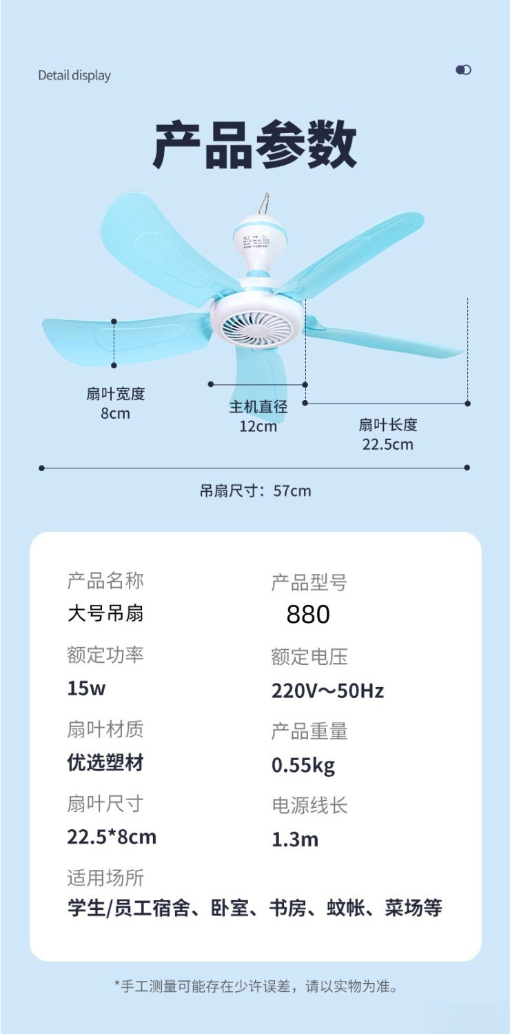 가정용 대형 천장 팬 거실 침실 학생 기숙사 모기장 음소거 미니 작은 전기 팬 큰 바람스토어 가기