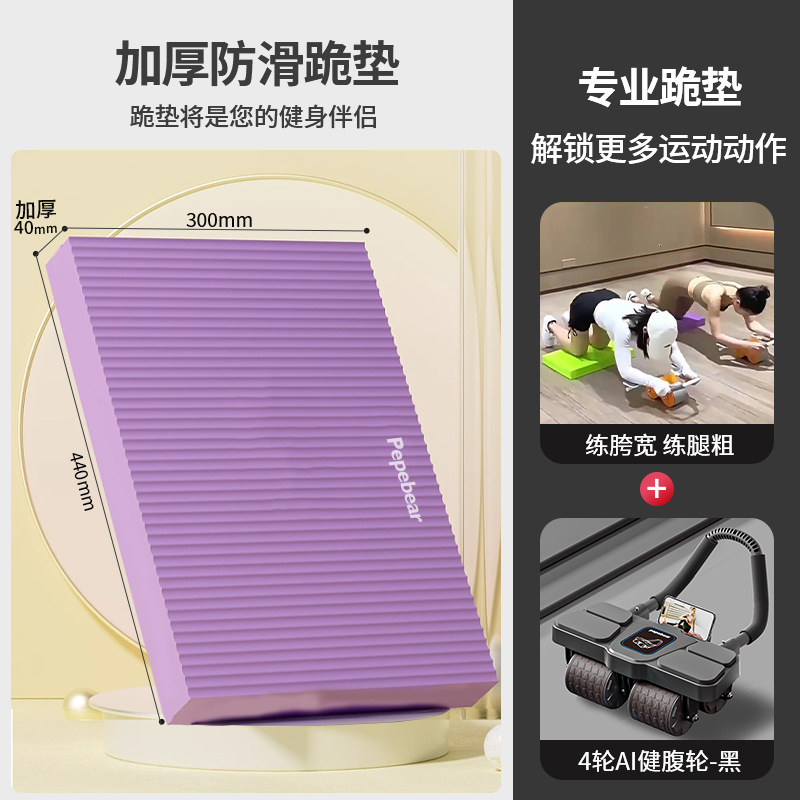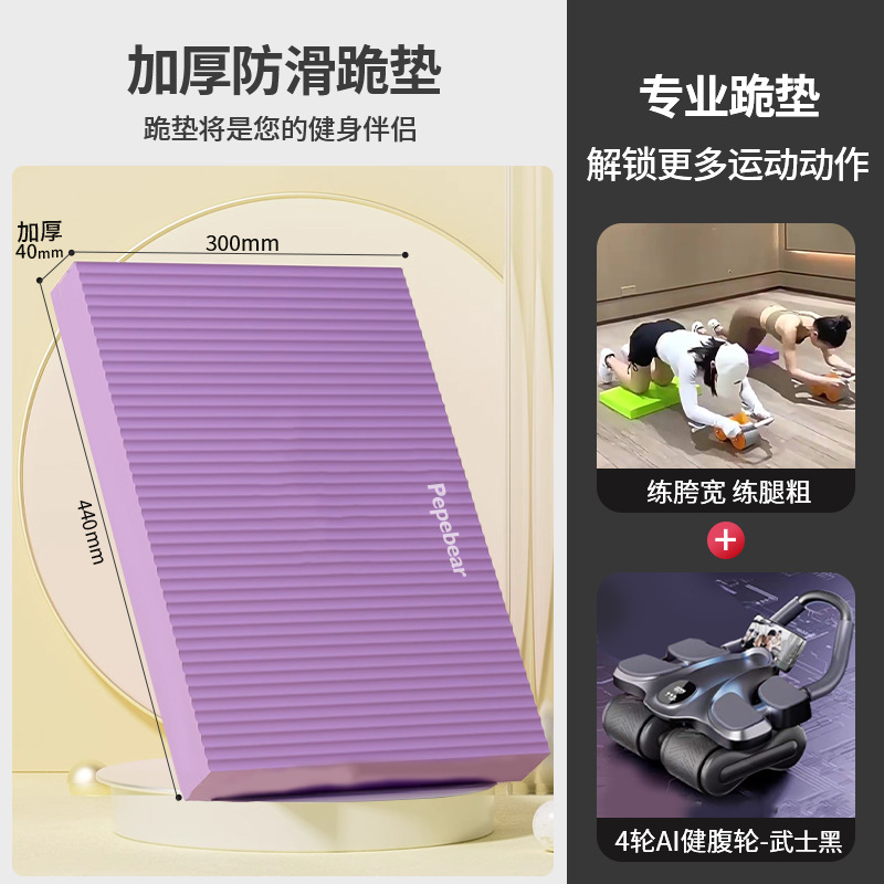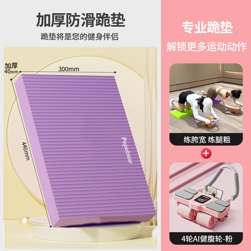 • [전문 무릎 패드 패키지] 4륜 복부 휠 - 페어리 파우더 + 4cm 두꺼운 대형 무릎 패드/무료 미끄럼 방지 무릎 패드