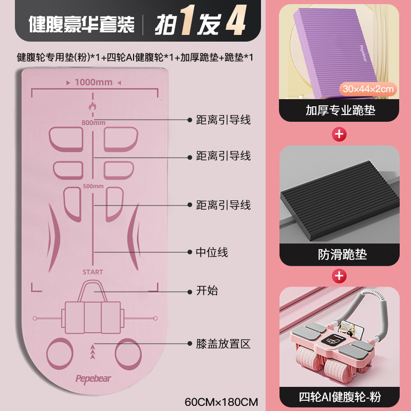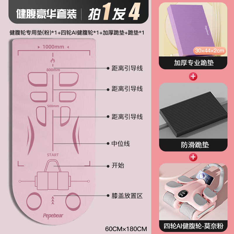 • [전문 무릎 패드 조합] 4륜 복부 휠 - 모네 핑크 + 4cm 두꺼운 대형 무릎 패드/무료 미끄럼 방지 무릎 패드