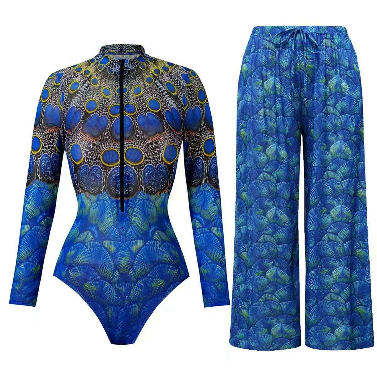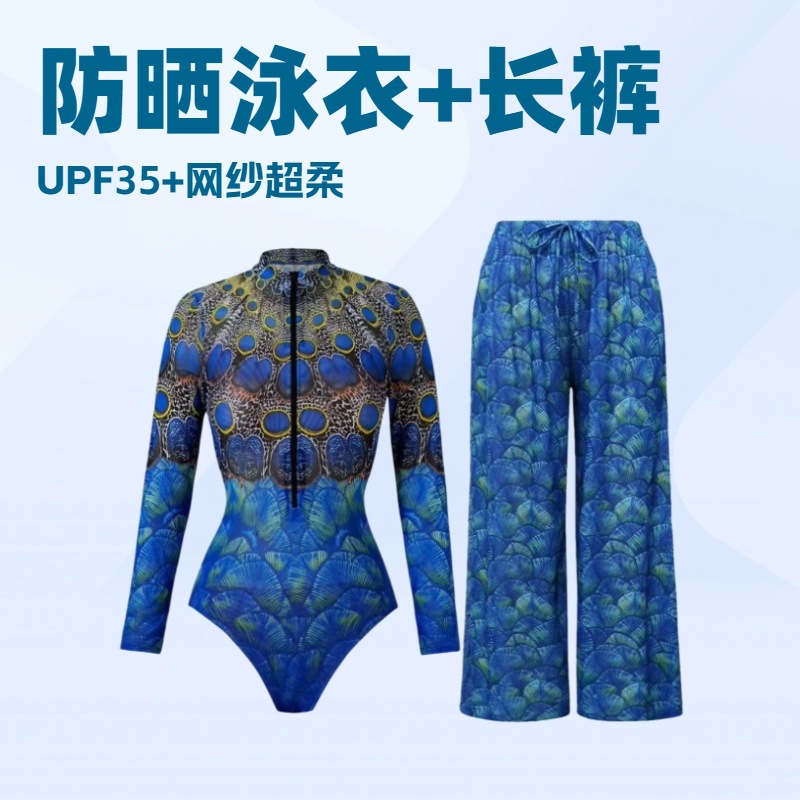 스마트 자외선 차단제 원피스 수영복 여성용 속건성 긴팔 유럽 및 미국 수영복 kupálnik 오버스커트 바지