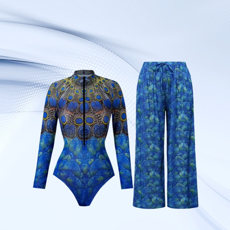 • 공작 수영복 + 블루 커버 스커트 (프리 사이즈)