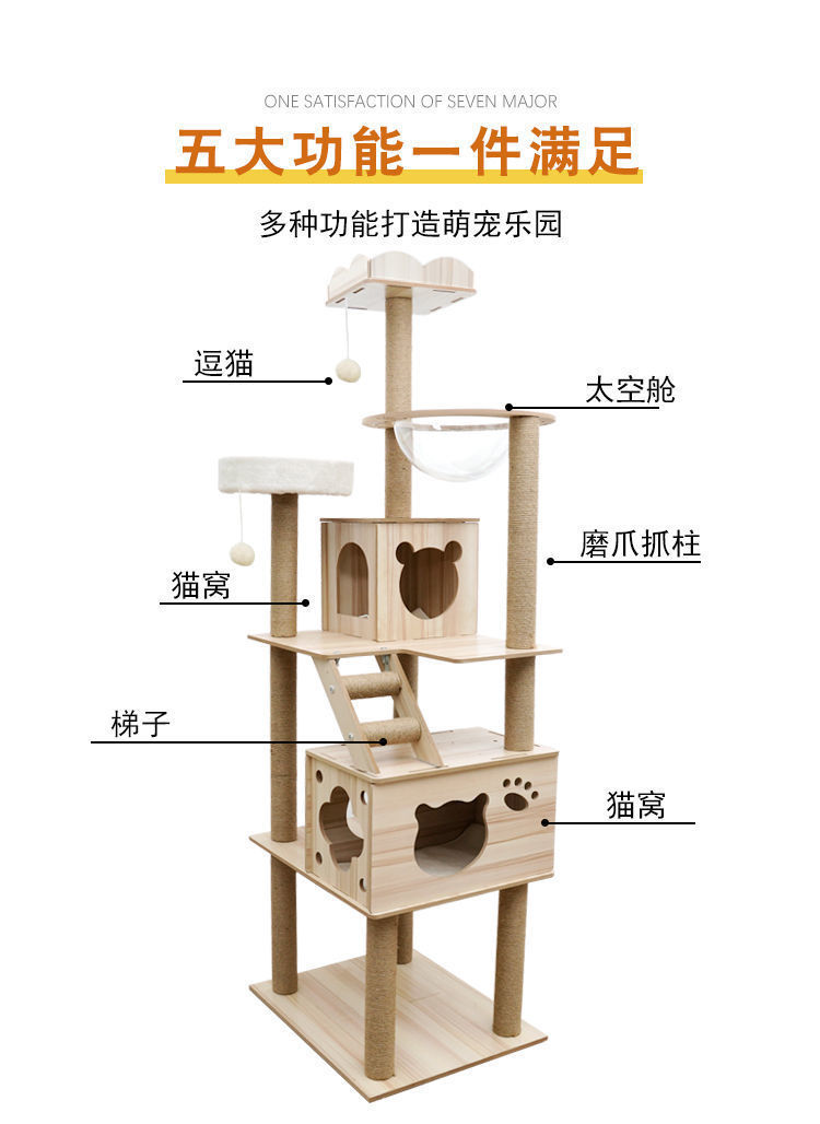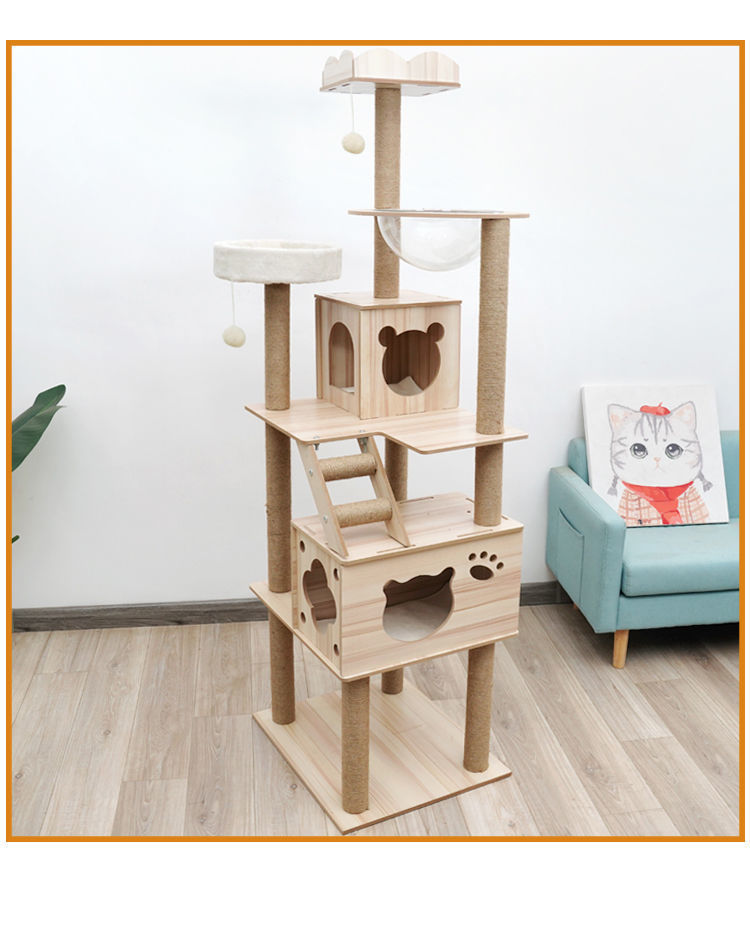 고양이 등반 랙 탑 해치 고양이 뚜껑 고양이 나무 통합 큰 단단한 나무 빌라 고양이 랙 고양이 스크래치 열 고양이 용품 모든 계절에 유니버설스토어 가기
