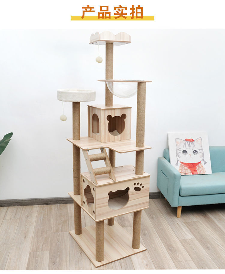 고양이 등반 랙 탑 해치 고양이 뚜껑 고양이 나무 통합 큰 단단한 나무 빌라 고양이 랙 고양이 스크래치 열 고양이 용품 모든 계절에 유니버설