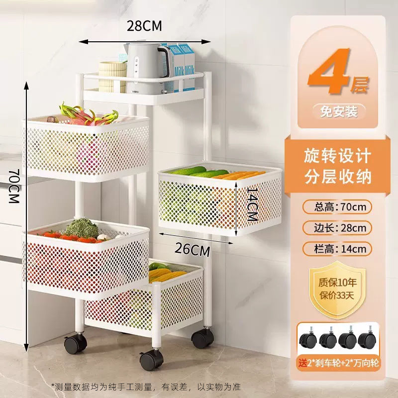 주방 회전 저장 선반 바닥 다층 가정용 거실 스낵 저장 랙 과일 및 야채 다기능 카트 선반