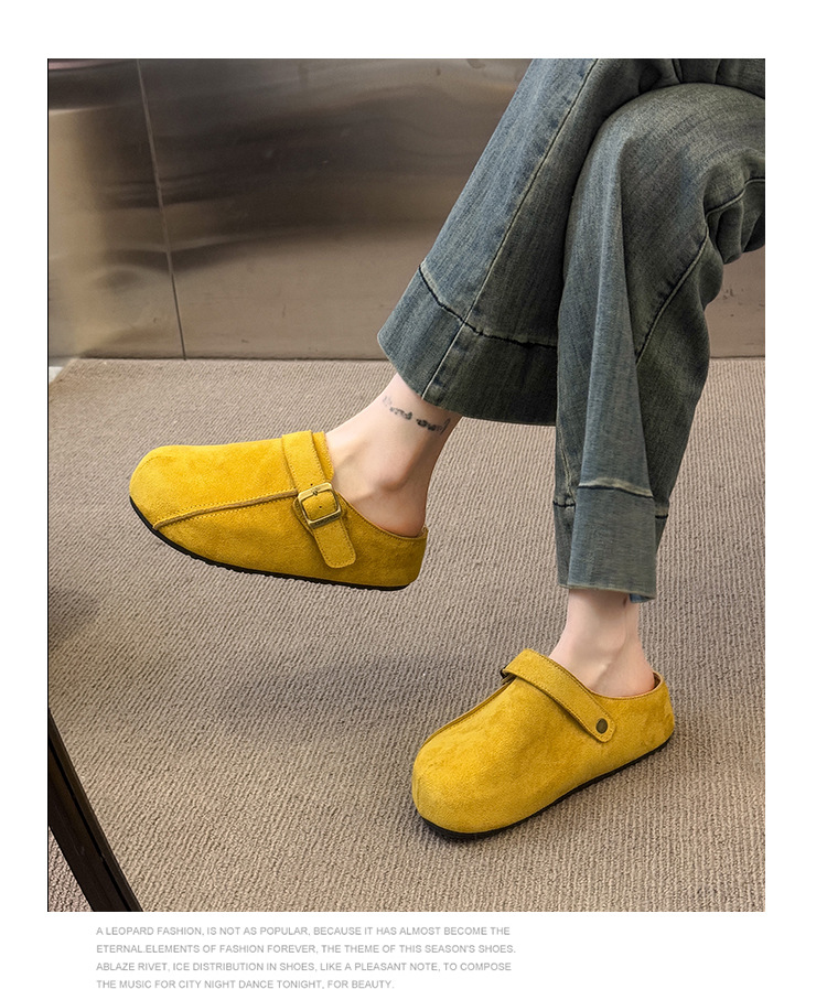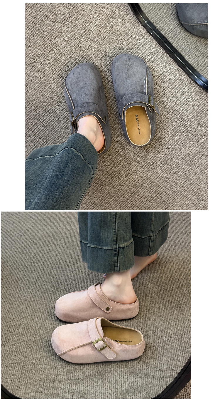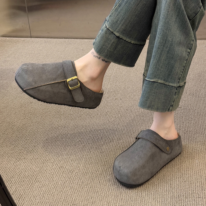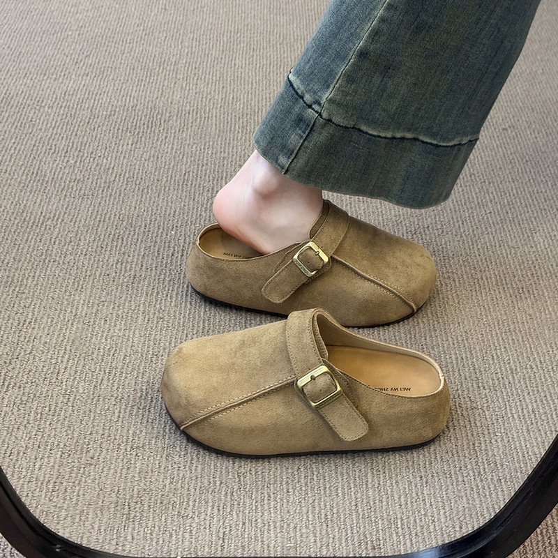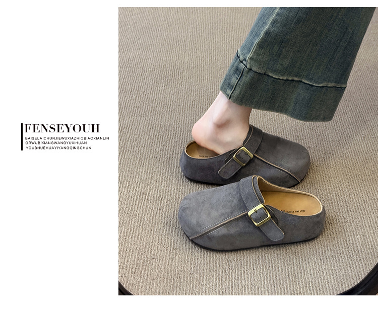 여성용 유럽과 미국 스타일의 복고풍 바오터우 하프 슬리퍼 2025 봄 스타일 슬립온 게으른 바오터우 두꺼운 밑창 버켄스탁 신발스토어 가기