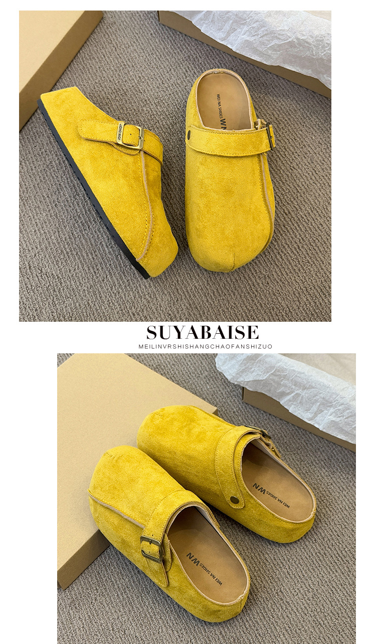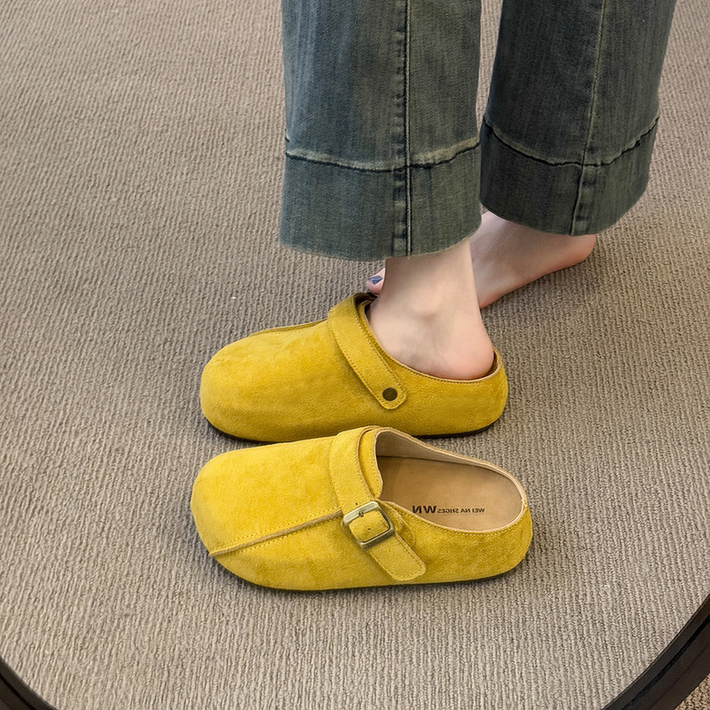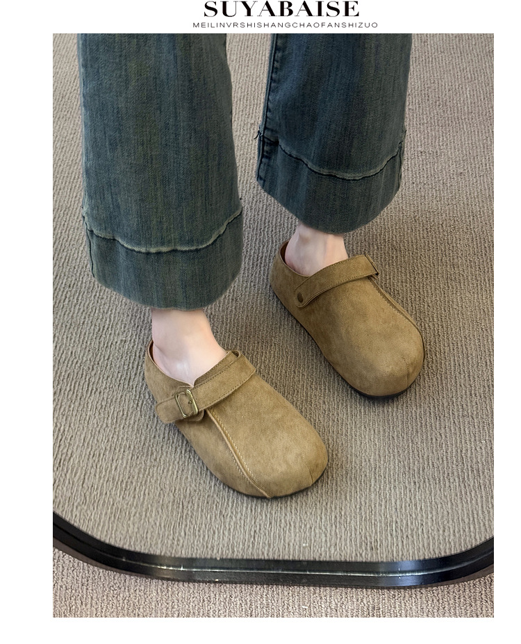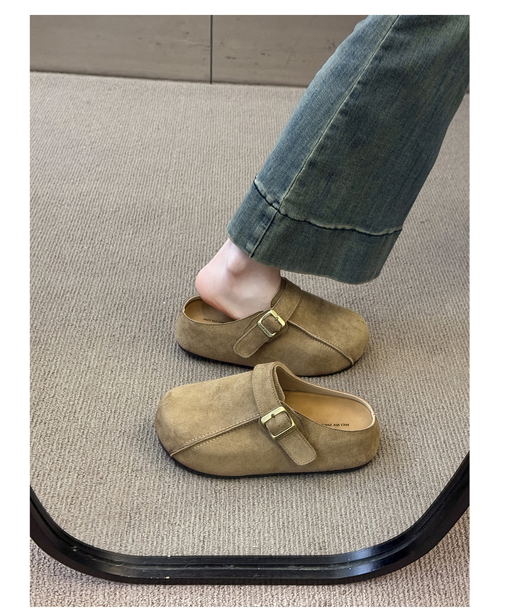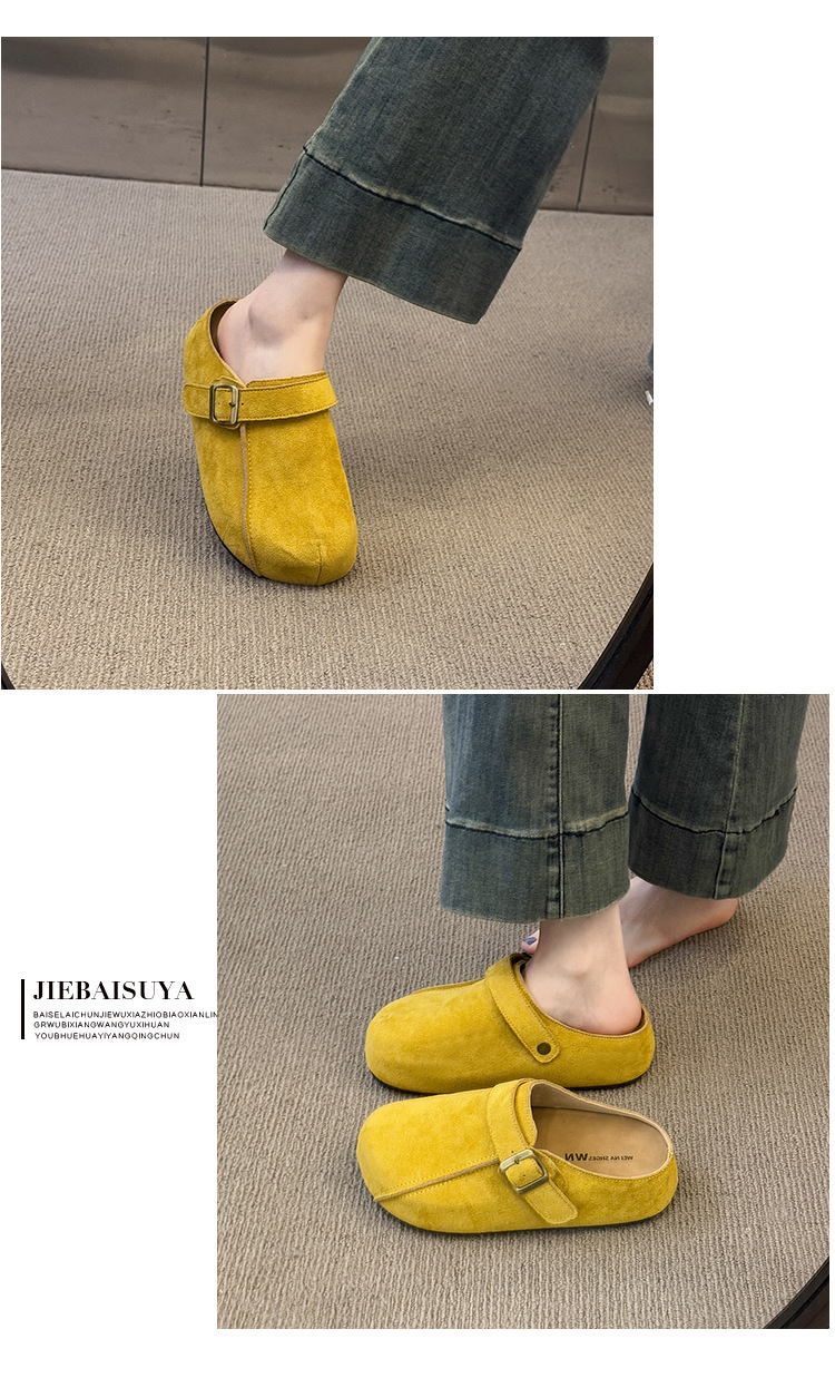여성용 유럽과 미국 스타일의 복고풍 바오터우 하프 슬리퍼 2025 봄 스타일 슬립온 게으른 바오터우 두꺼운 밑창 버켄스탁 신발스토어 가기