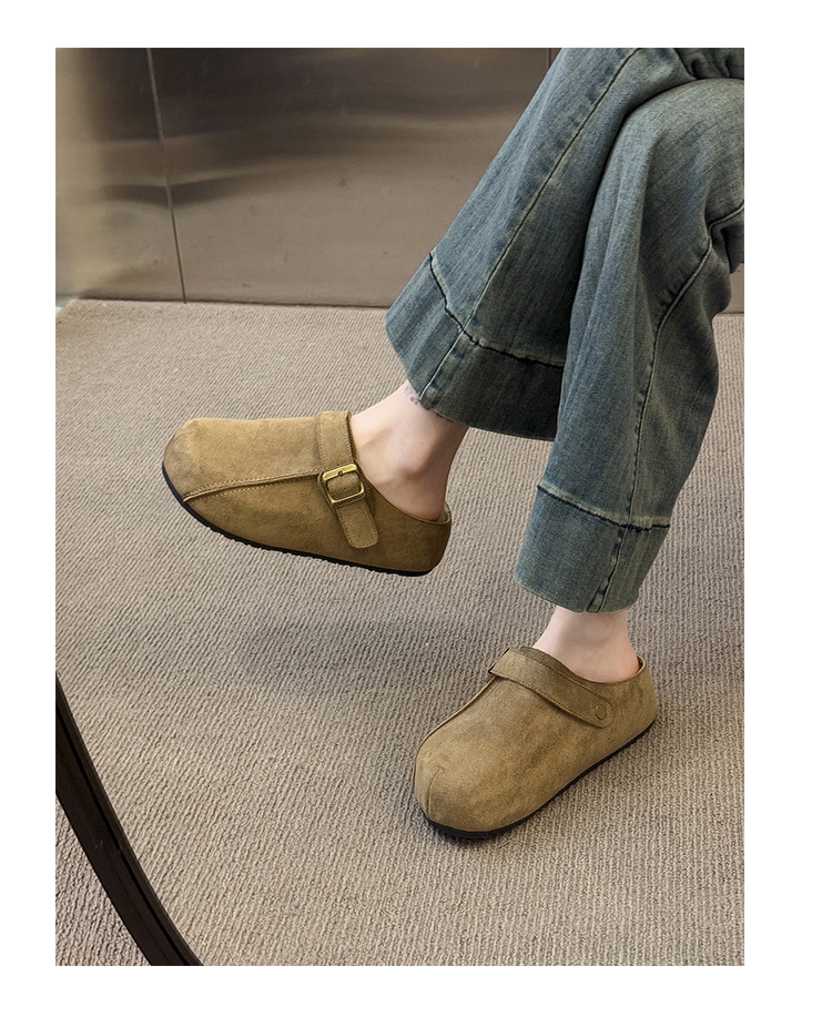 여성용 유럽과 미국 스타일의 복고풍 바오터우 하프 슬리퍼 2025 봄 스타일 슬립온 게으른 바오터우 두꺼운 밑창 버켄스탁 신발