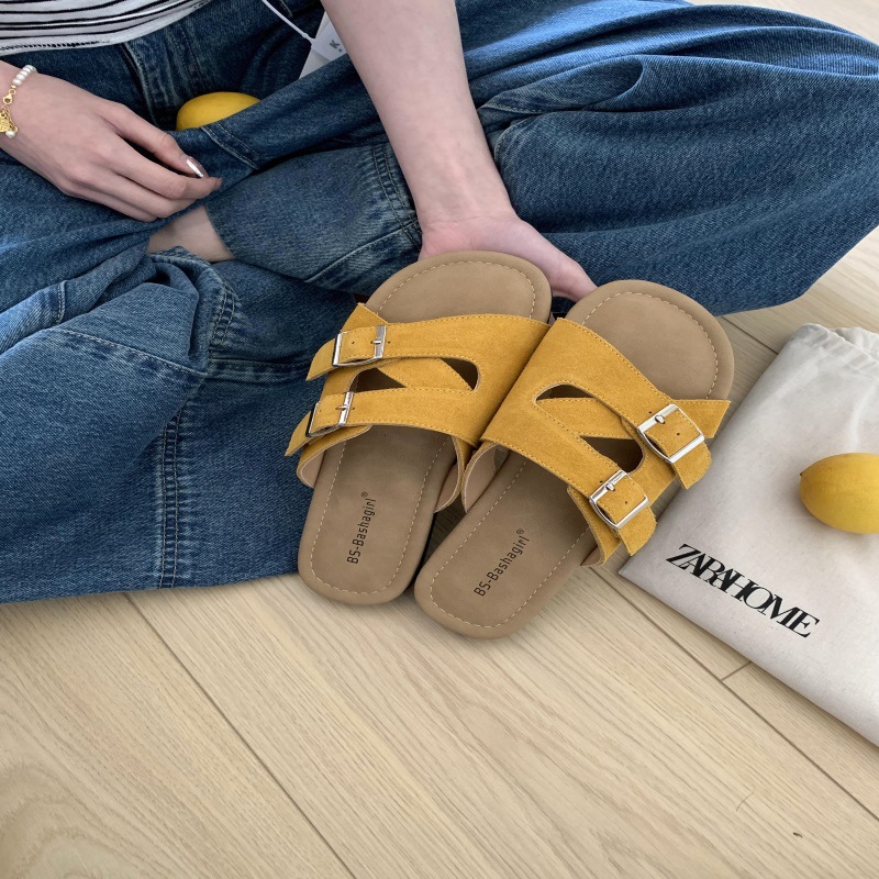 여성 패션 아우터용 그린 버켄스탁 슬리퍼 2025 여름 스타일 천연가죽 두꺼운 밑창 버켄스탁 슈즈 고급 원라인 샌들스토어 가기