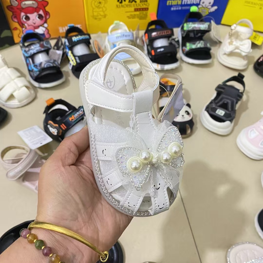 여름 대외 무역 새로운 스타일 유아 아기 유아 샌들 세련된 통기성 부드러운 밑창 나비 매듭 발가락 샌들 정리스토어 가기