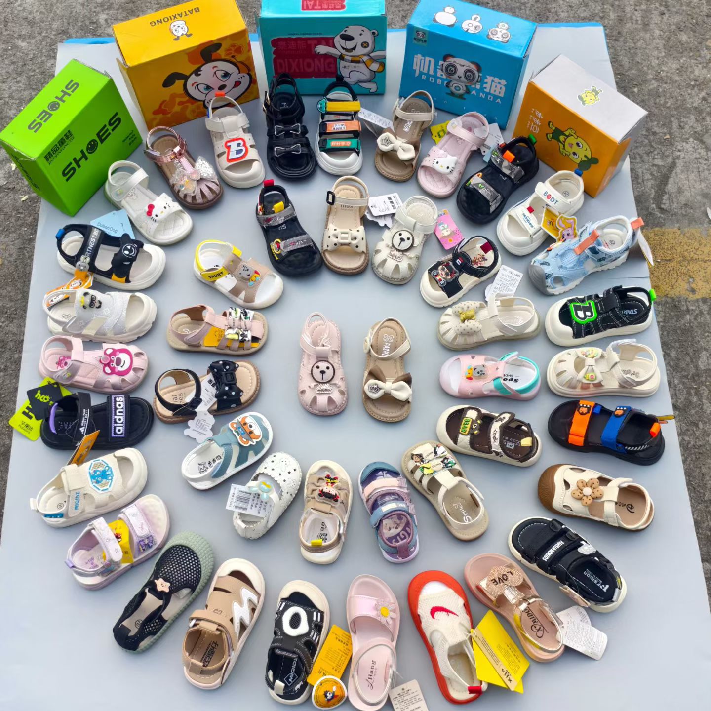 여름 대외 무역 새로운 스타일 유아 아기 유아 샌들 세련된 통기성 부드러운 밑창 나비 매듭 발가락 샌들 정리