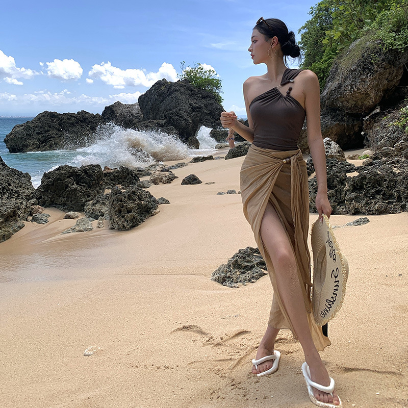 여성을위한 하이 엔드 원 숄더 서스펜더 원피스 롱 스커트 수영복 섹시한 해변 휴가 여성 수영복 2025 새로운 스타일