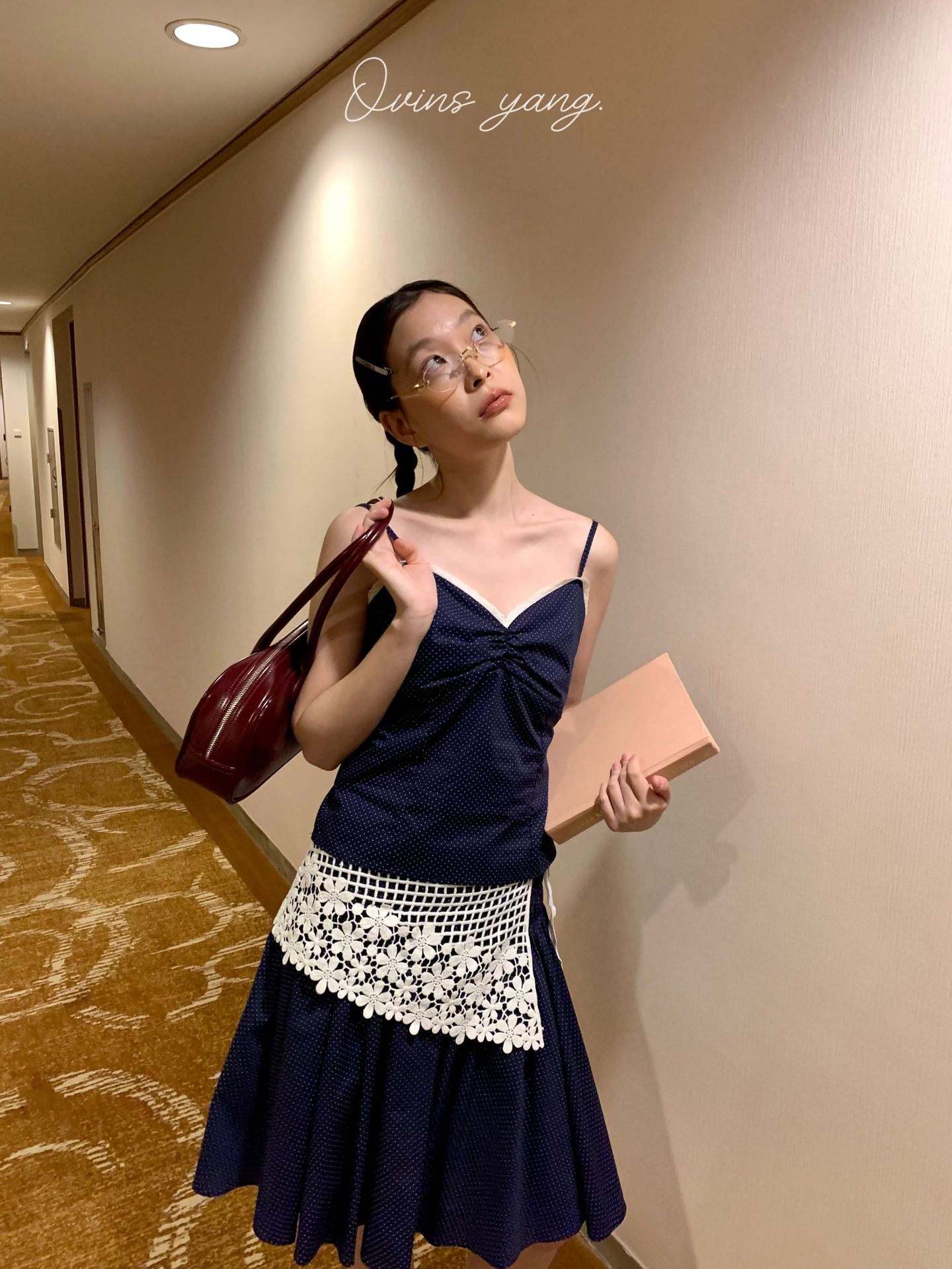 Ovinsyang Hollow-out Floral Fart 커튼 스커트 여성 스태킹 아우터 디자인 센스 니쉬 한국식 스커트스토어 가기