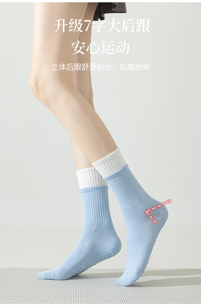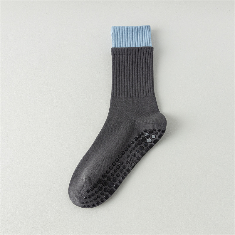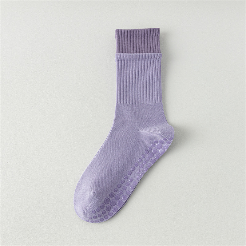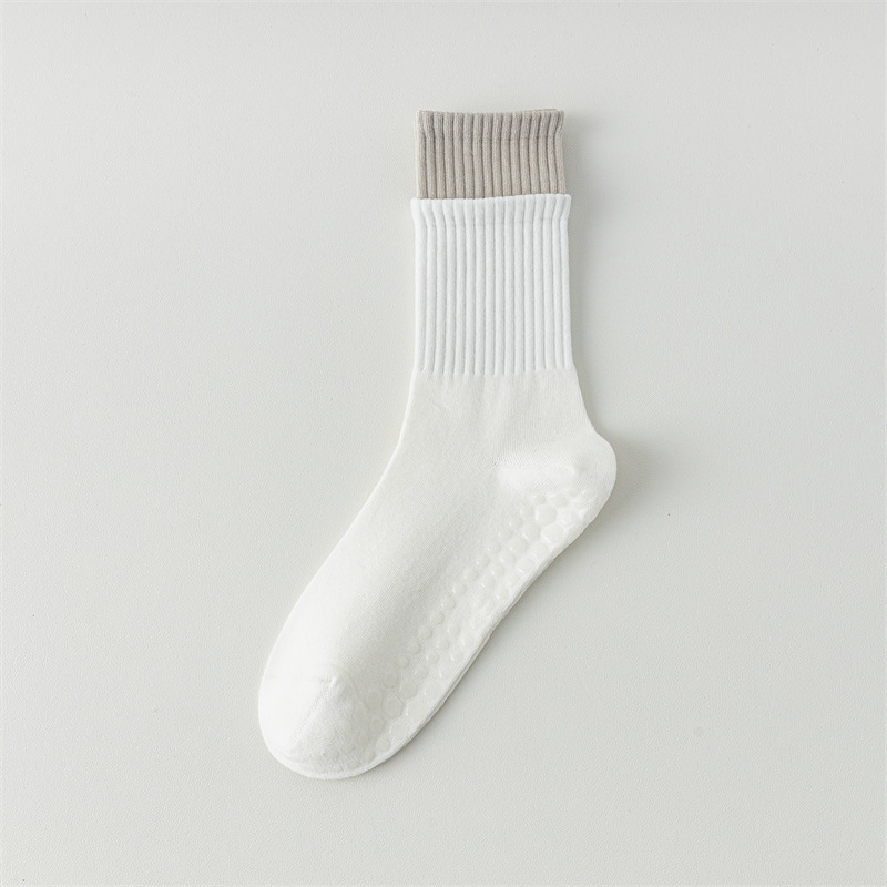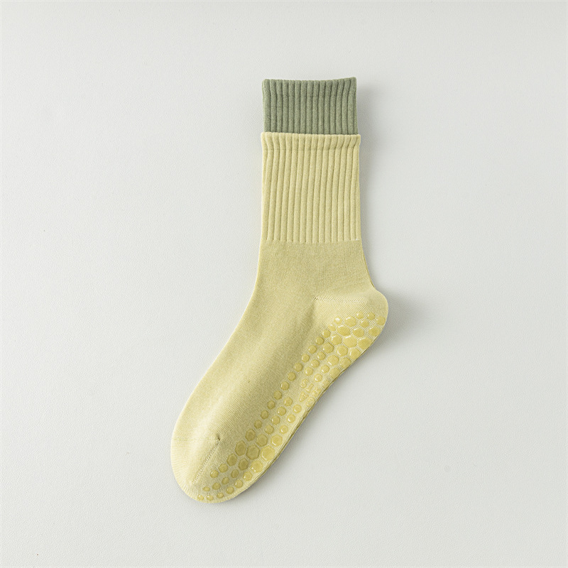 요가 양말 미끄럼 방지 여성용 순면 종아리 양말 뼈없는 대비 색상 더블 로우 입 실내 필라테스 양말 줄넘기 및 에어로빅스토어 가기