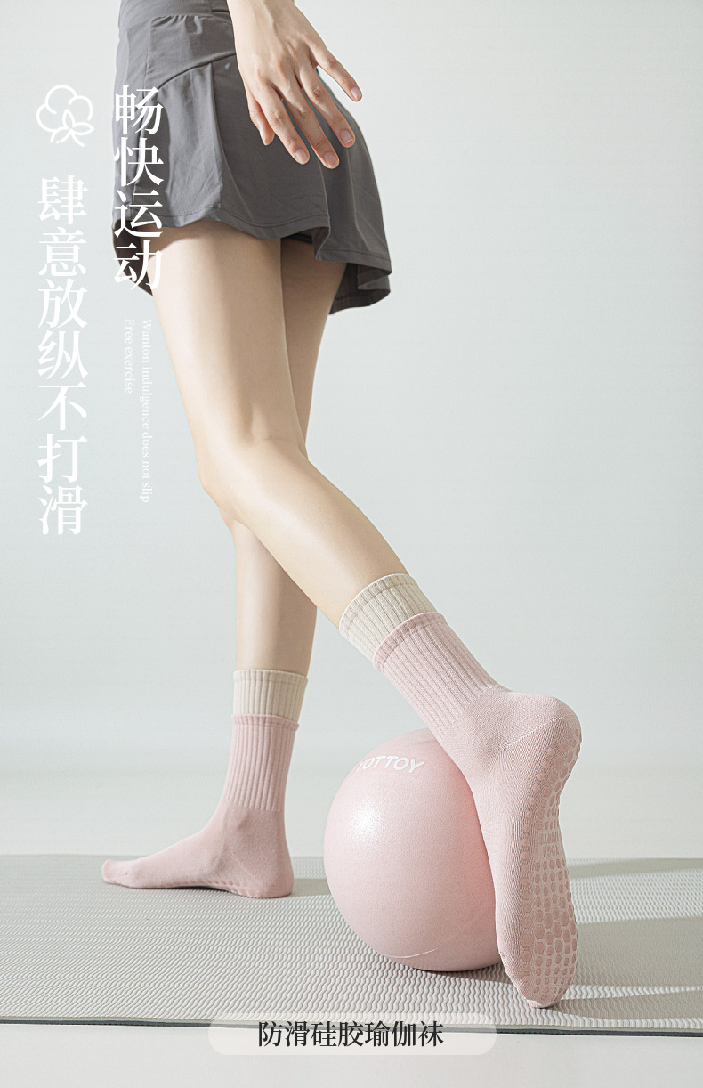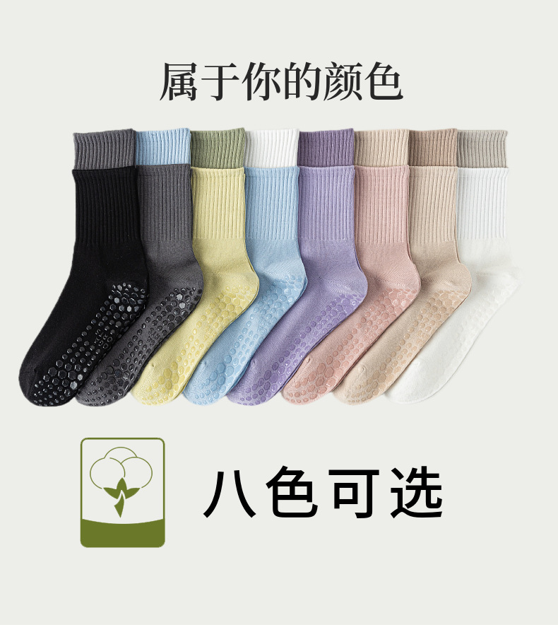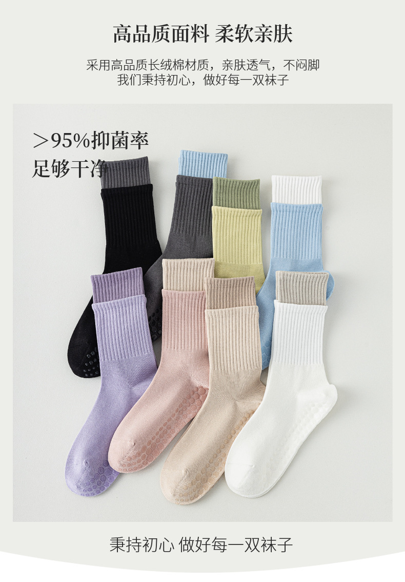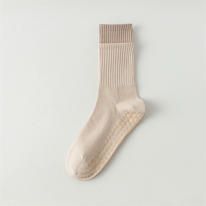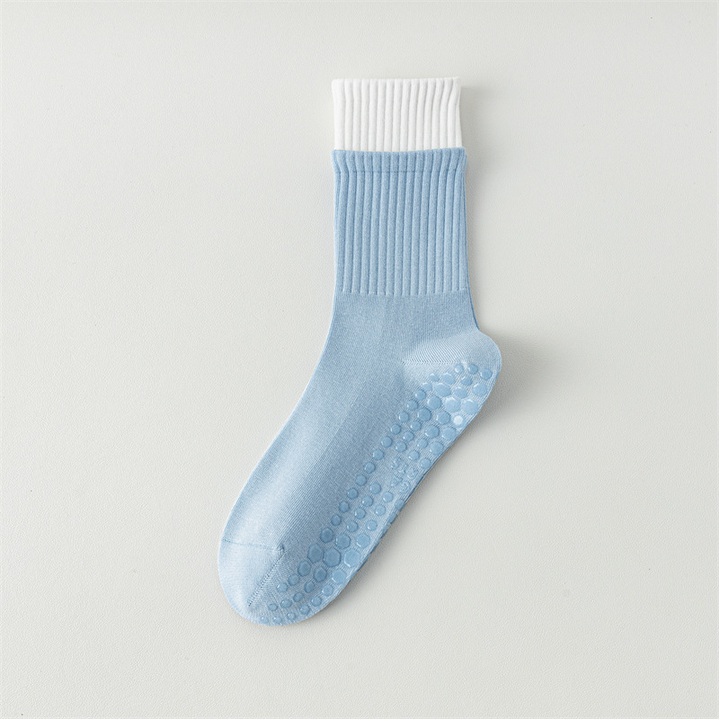 요가 양말 미끄럼 방지 여성용 순면 종아리 양말 뼈없는 대비 색상 더블 로우 입 실내 필라테스 양말 줄넘기 및 에어로빅스토어 가기