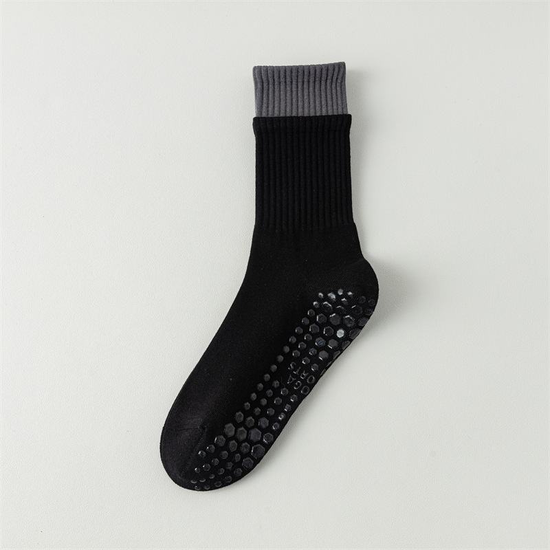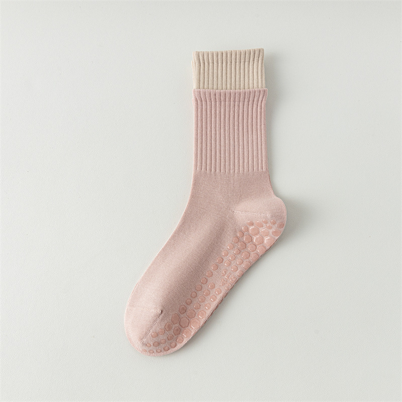 요가 양말 미끄럼 방지 여성용 순면 종아리 양말 뼈없는 대비 색상 더블 로우 입 실내 필라테스 양말 줄넘기 및 에어로빅