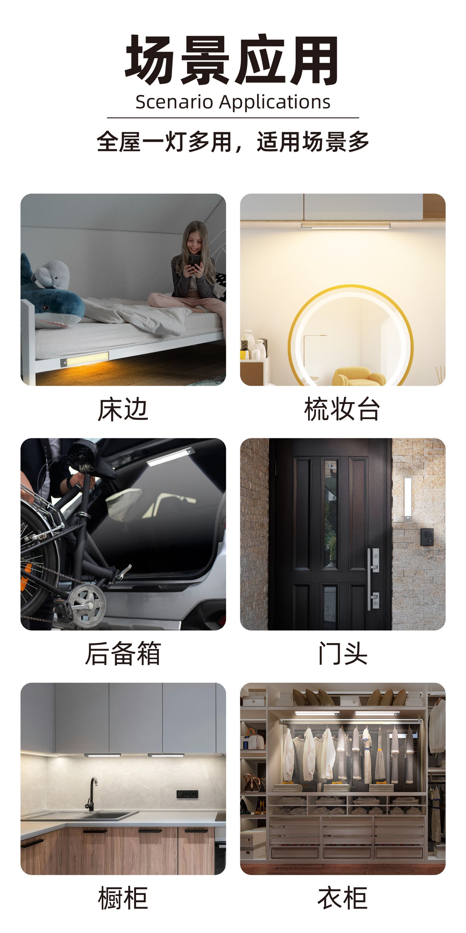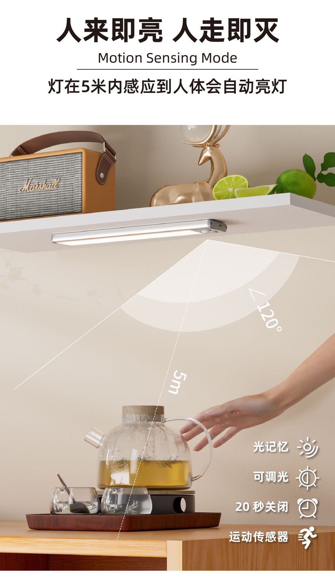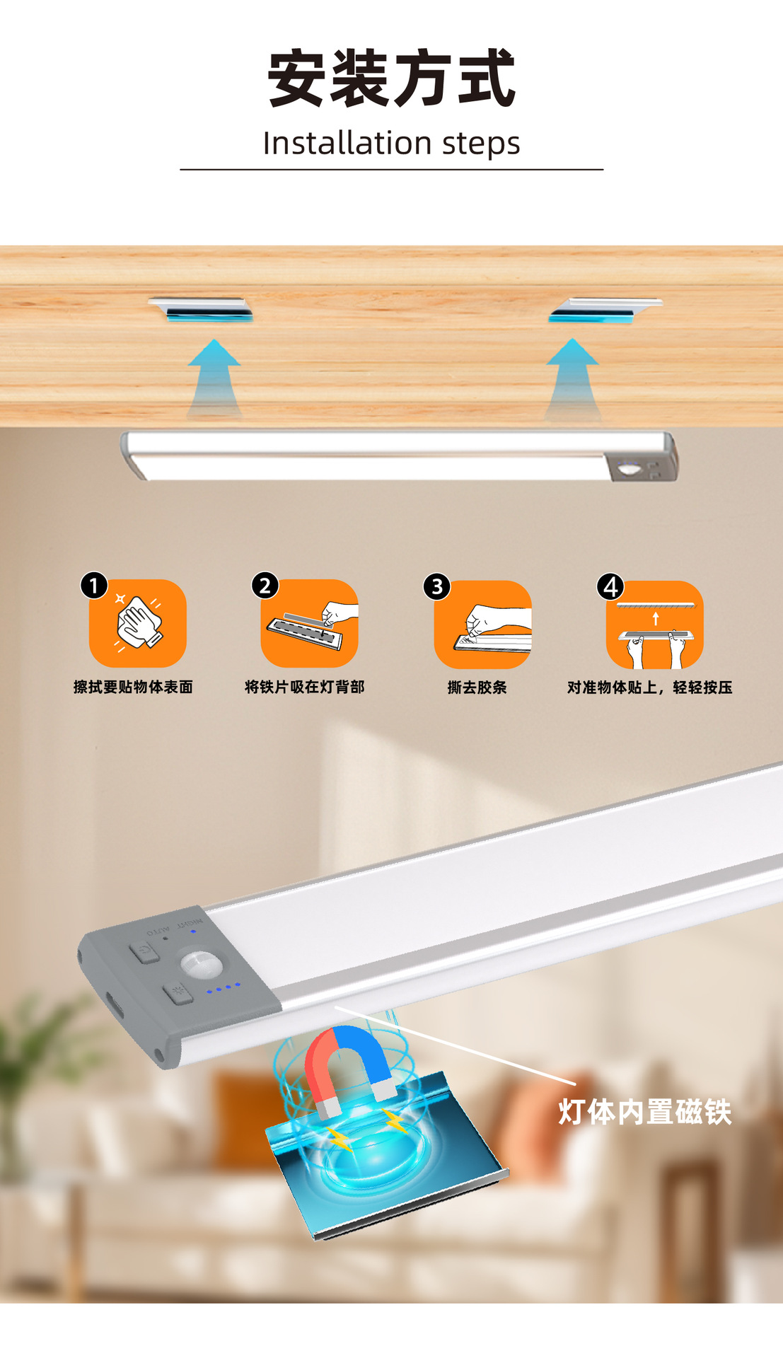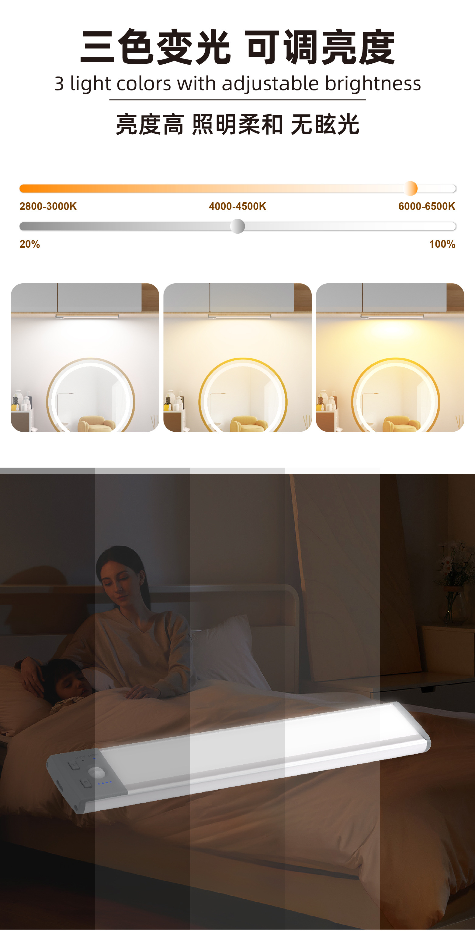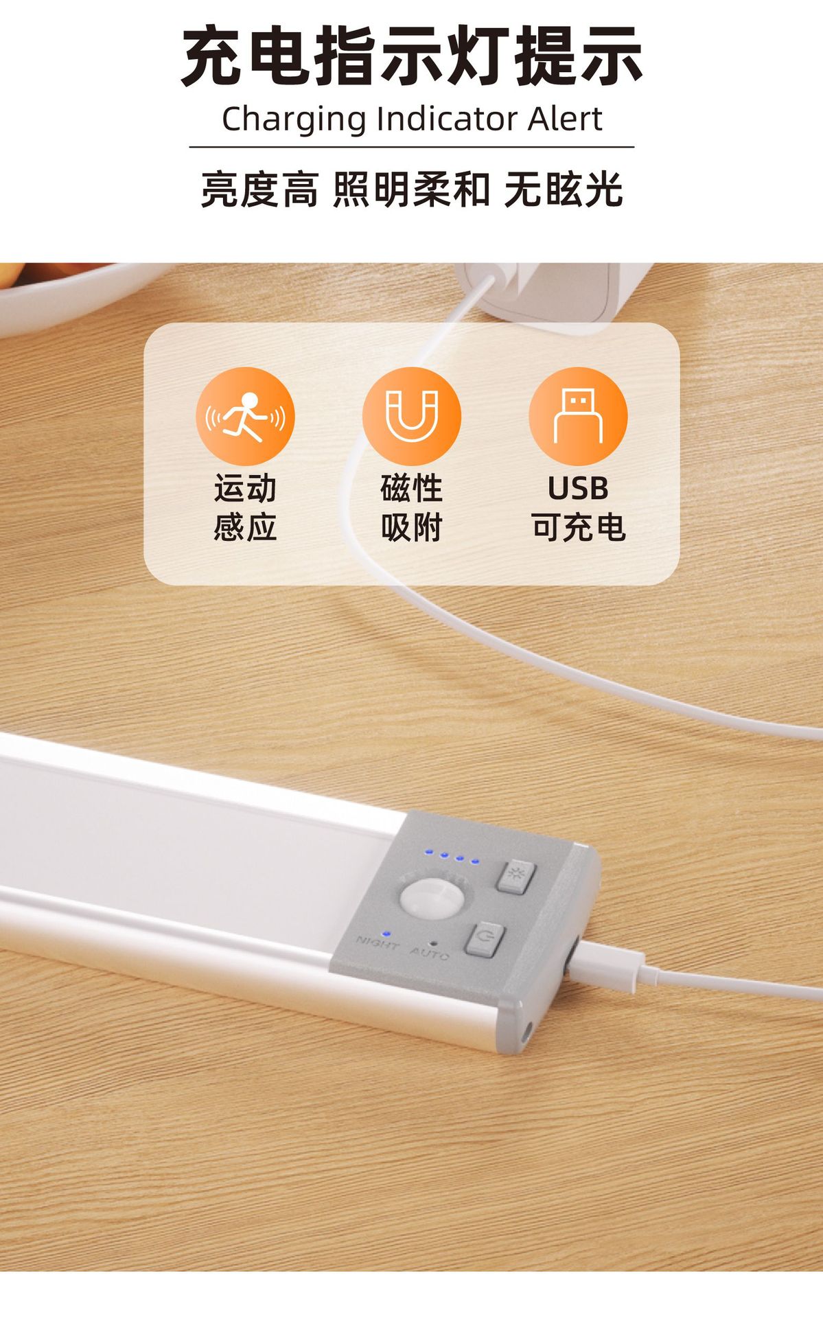 펀치 프리 충전식 인체 자동 감지 야간 조명 무선 침실 머리맡 램프 스마트 소프트 라이트 복도 통로 조명